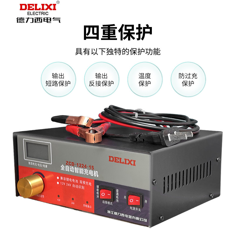 德力西汽车电瓶充电器12v24v大功率蓄电池充电机全自动智能通用型