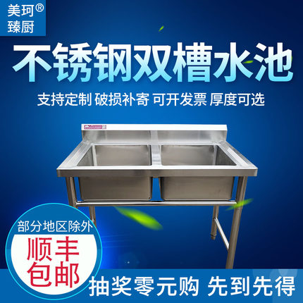 304双槽不锈钢水池/定做双星商用洗刷洗手洗菜浸泡池厨房型材盆大