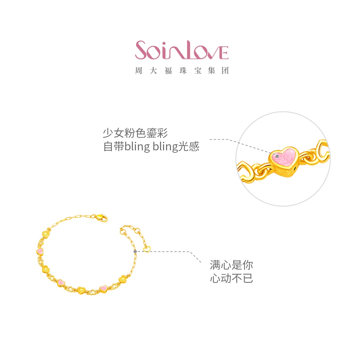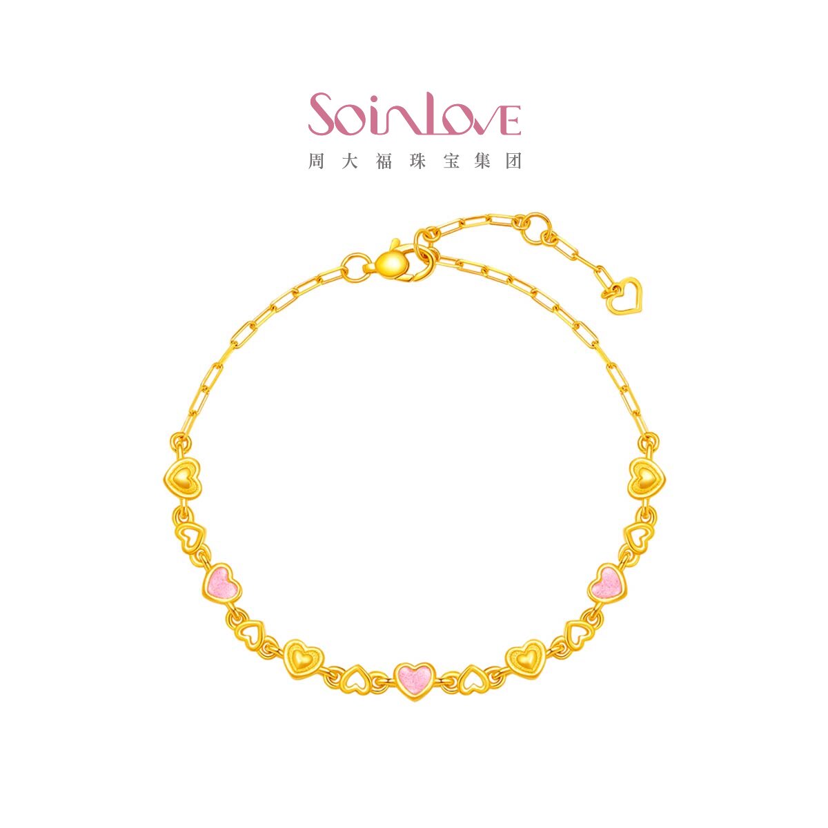 周大福SOINLOVE「宝藏女孩」爱心黄金满心足金手链女圣诞礼物