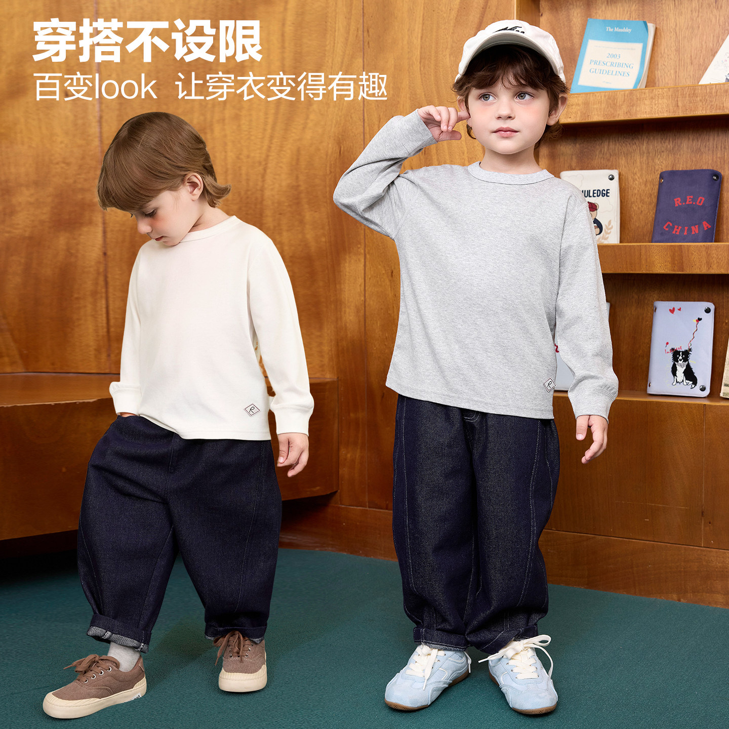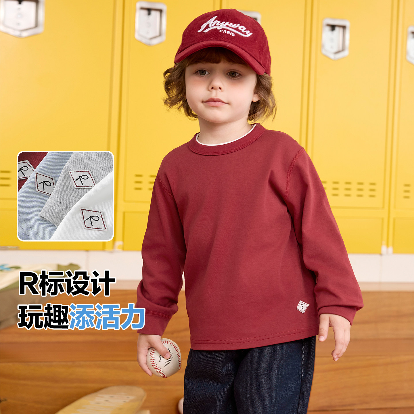 右欧男童长袖T恤宝宝2025新款童装春秋中大童打底春季儿童上衣潮