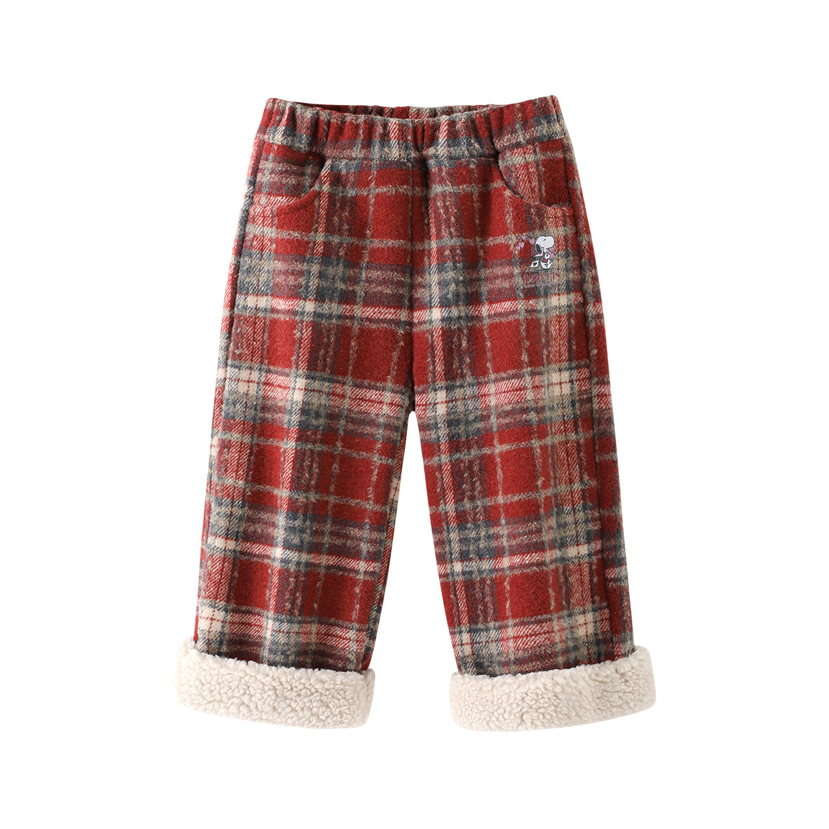 史努比女童直筒裤2025秋冬新款洋气女孩加绒保暖长裤儿童冬季裤子