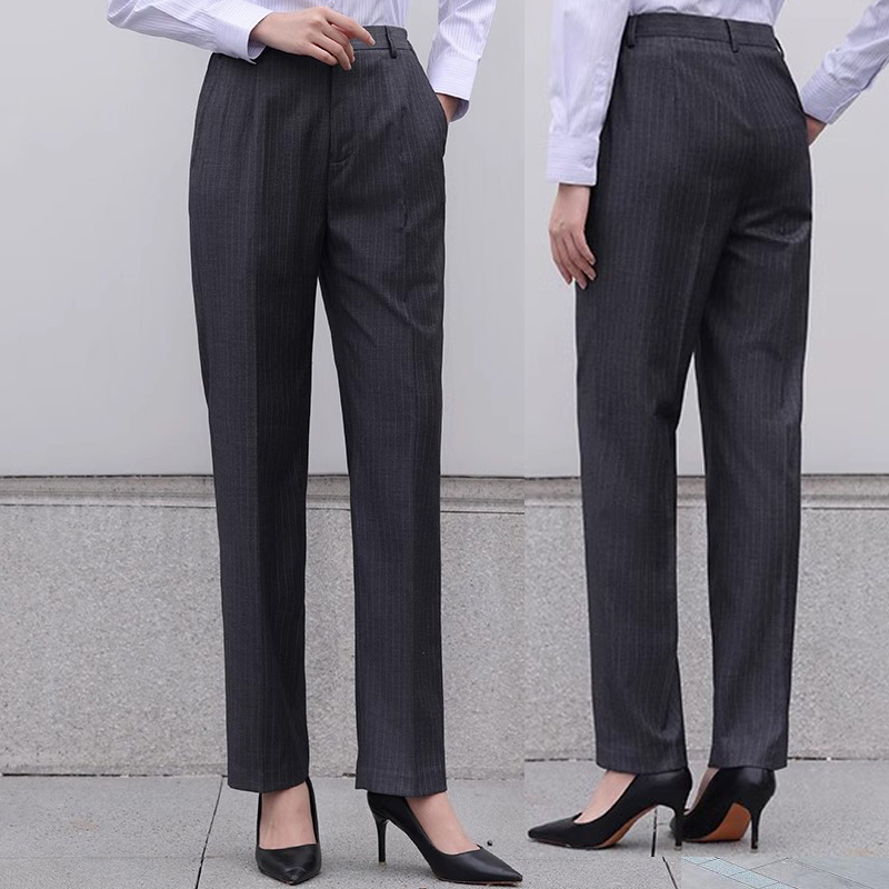 新款中N行服银行女西装裤子春秋工作服藏青暗红灰色条纹加绒长裤