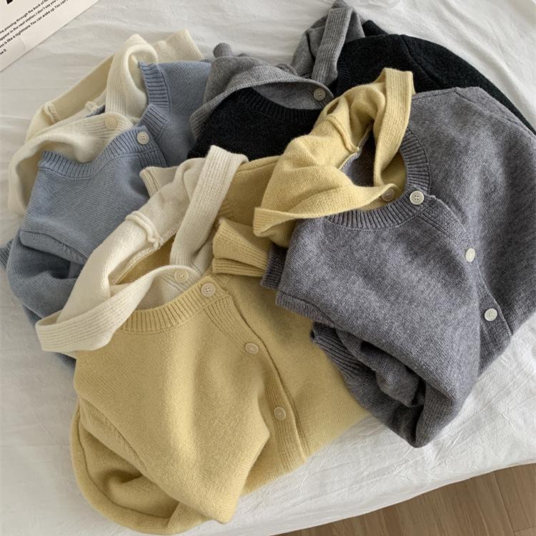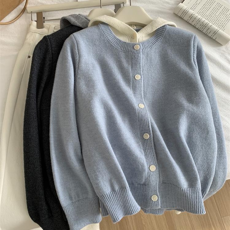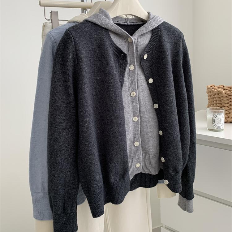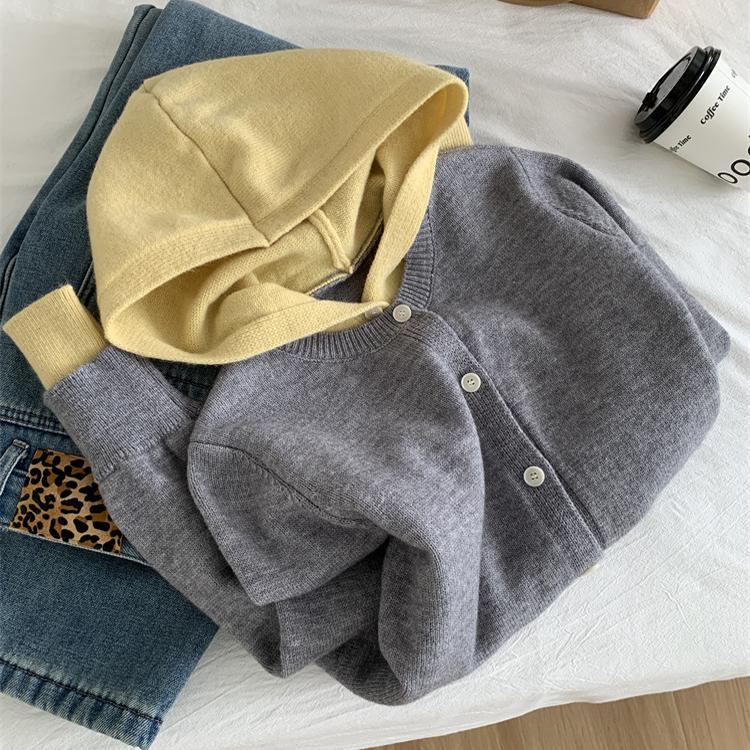 马卡龙撞色连帽针织开衫女设计感假两件毛衣外套春秋宽松百搭上衣