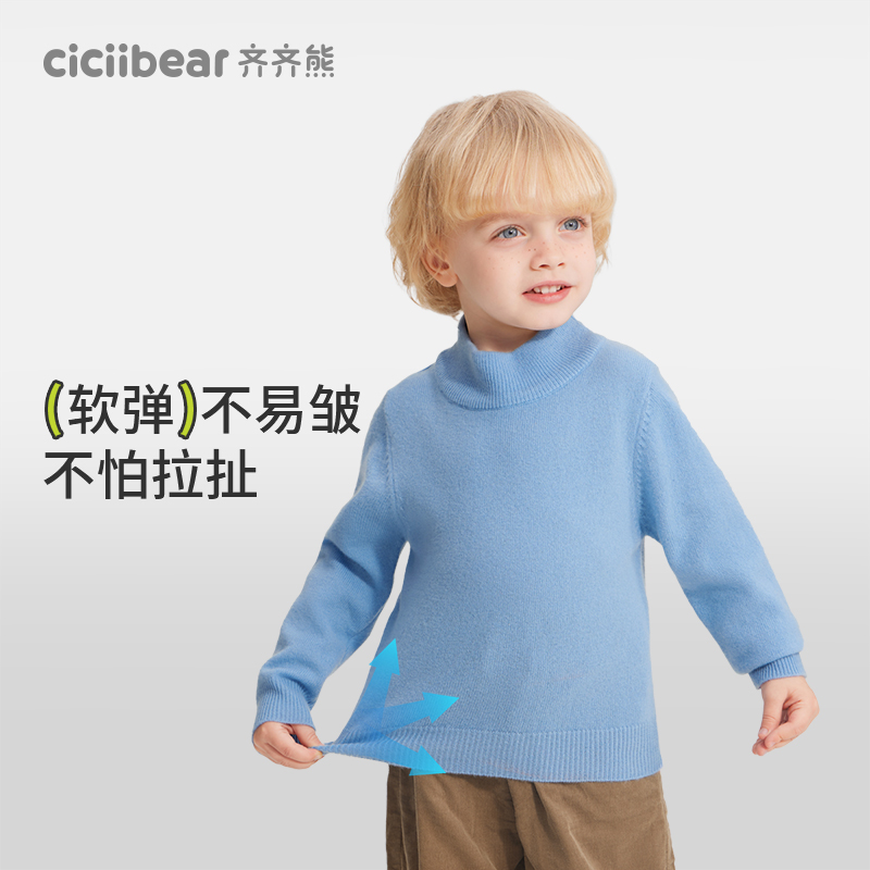 [100%澳洲羊毛]齐齐熊宝宝半高领打底毛衣男童春秋羊毛衫儿童保暖