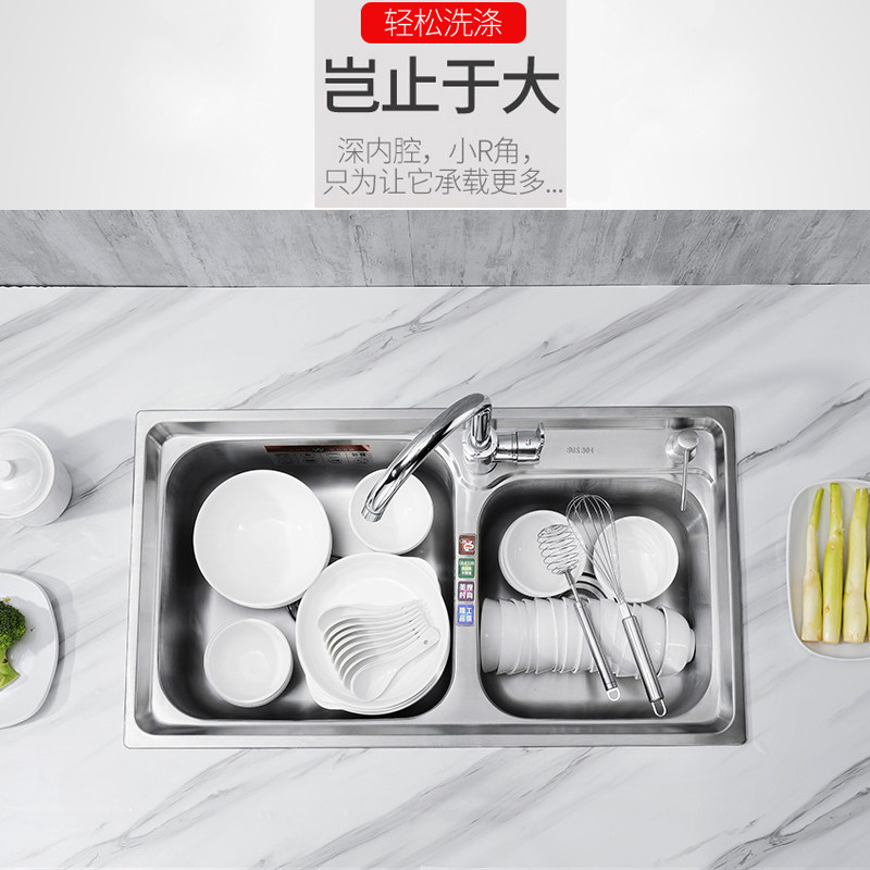 加厚不锈钢水槽 304双槽套餐 带插刀架 厨房洗菜盆洗碗池双盆全套