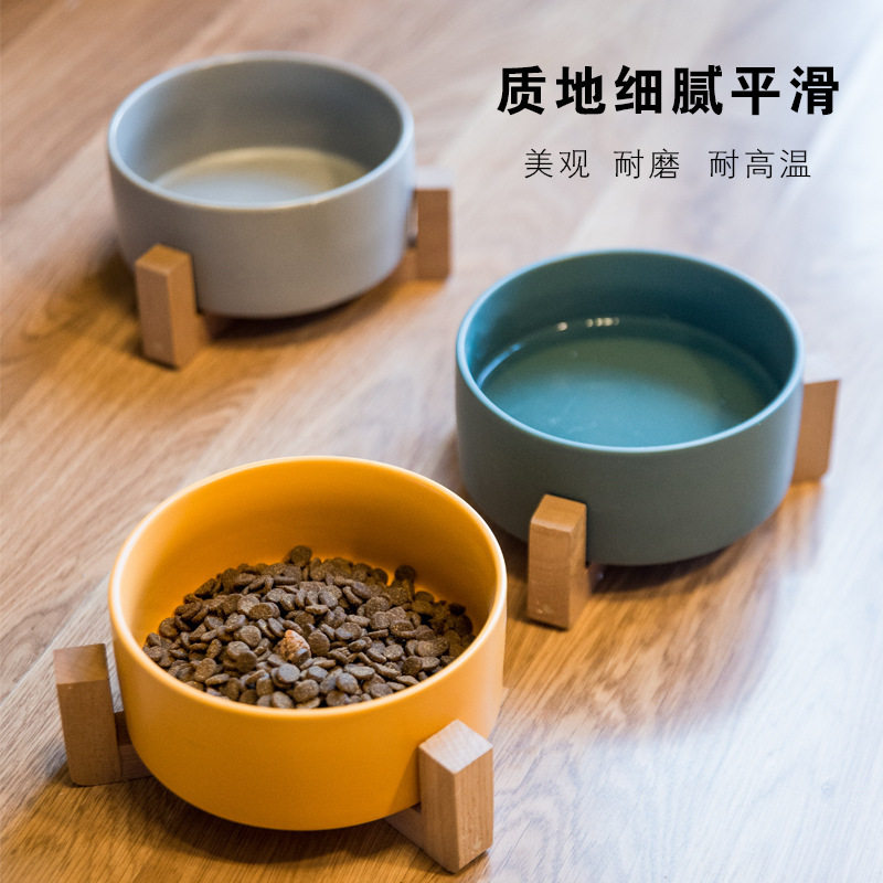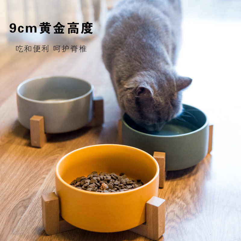 猫碗狗碗猫盆陶瓷猫咪碗实木架猫喝水碗猫饭盆食盆猫粮碗加重通用