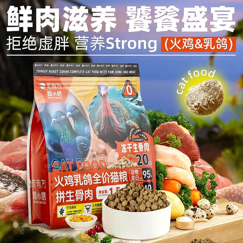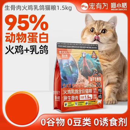 宠有为猫咪全价猫粮火鸡乳鸽生骨肉发腮成猫幼猫全阶段猫干粮 宠