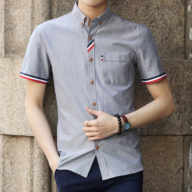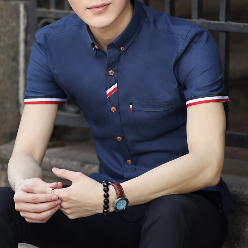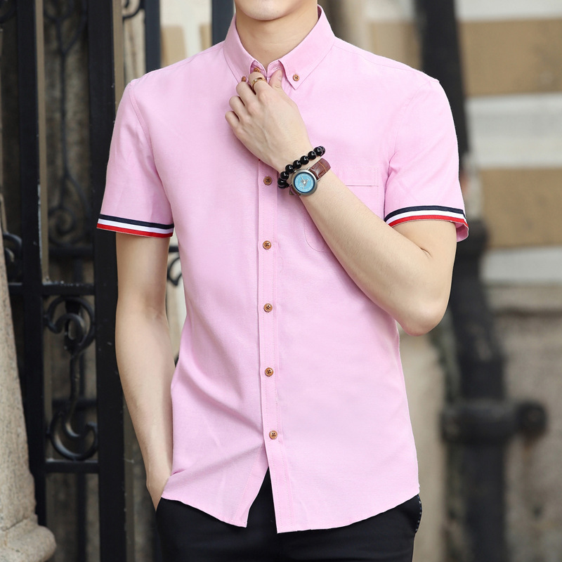 短袖衬衫男修身型夏季韩版休闲潮流百搭帅秋薄青少年学生大码衬衣