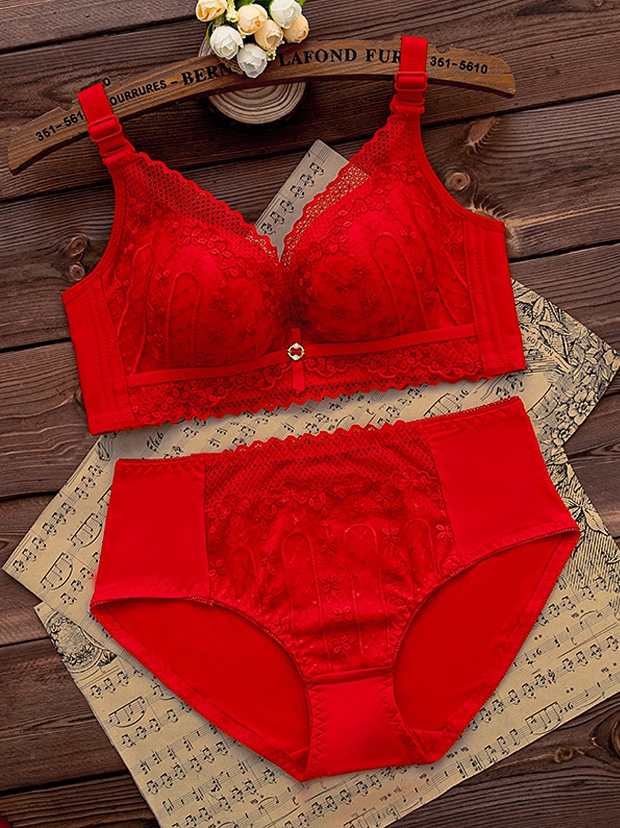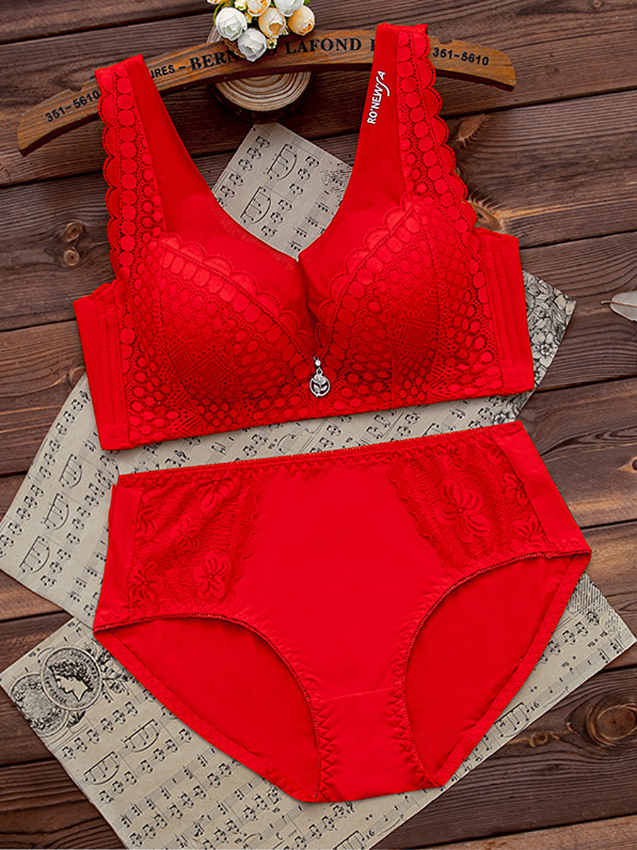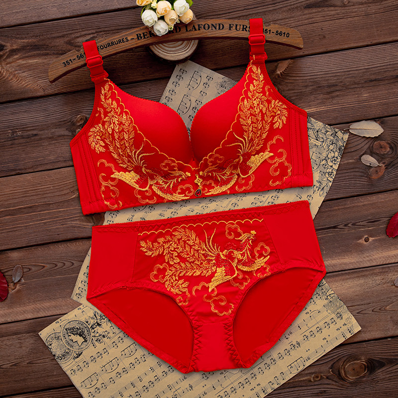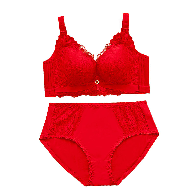 本命年红色内衣内裤套装女无钢圈小胸聚拢文胸结婚新娘2026属马年