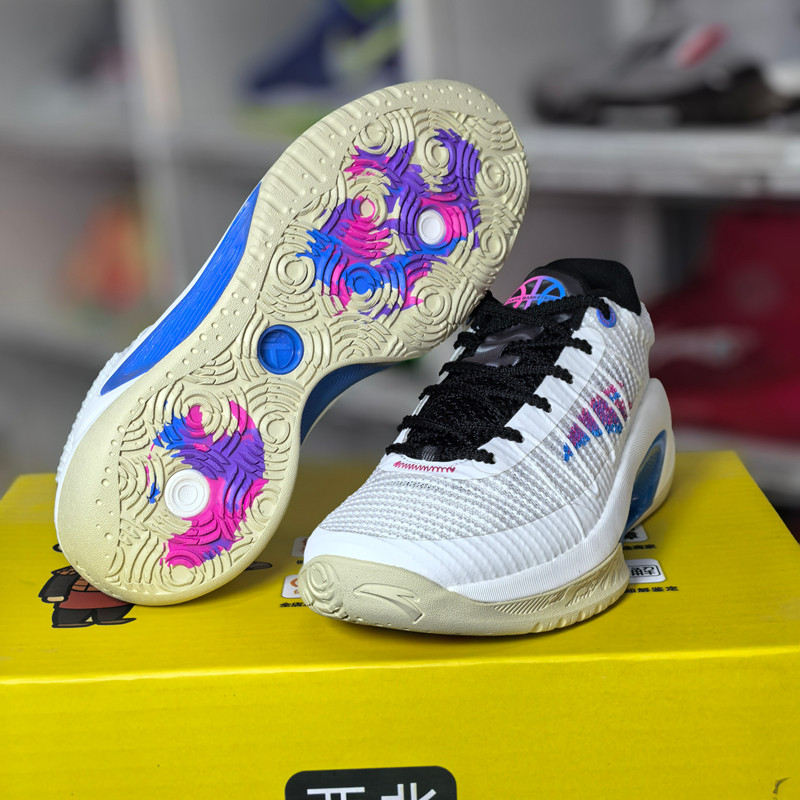 安踏 三分雨 LITE V2 防滑 透气 耐磨 稳定支撑 实战 篮球鞋白蓝