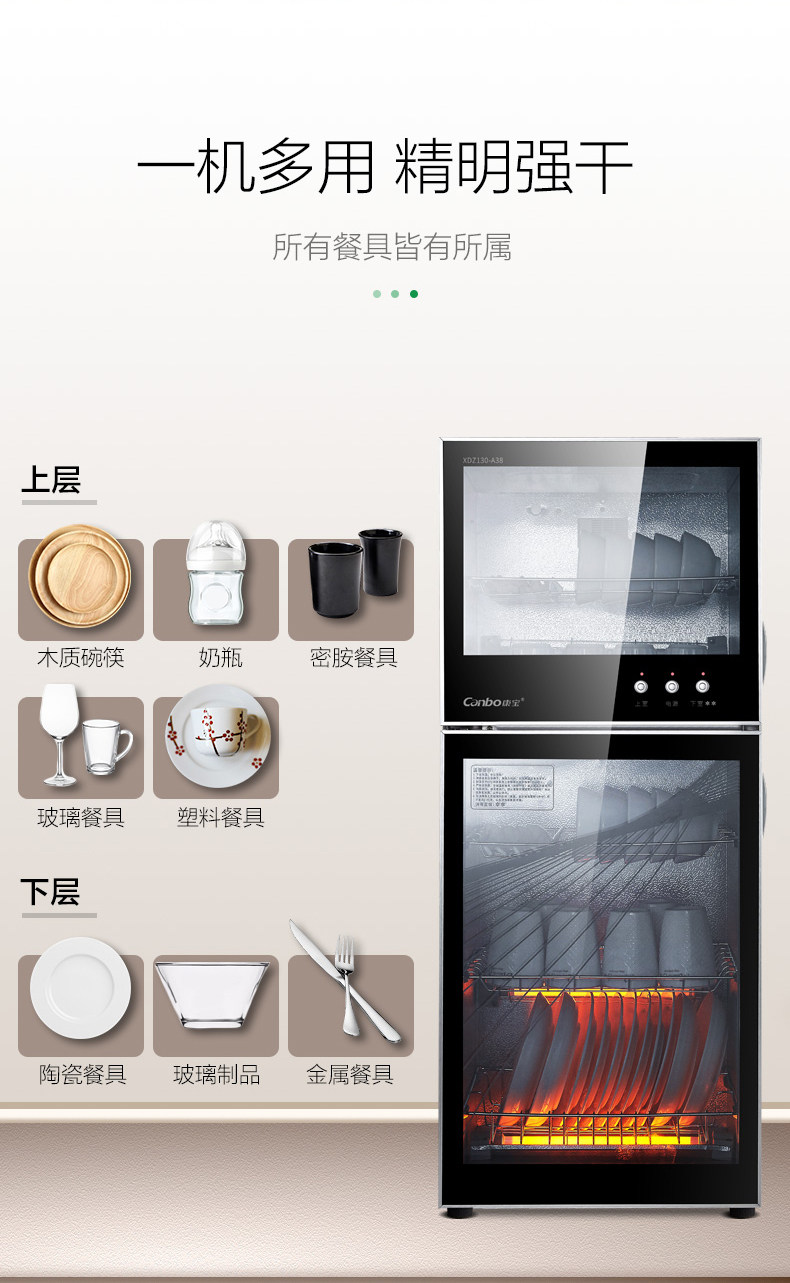 康宝XDZ130-A38消毒柜家用立式大容量厨房碗筷柜二星高温消毒双层