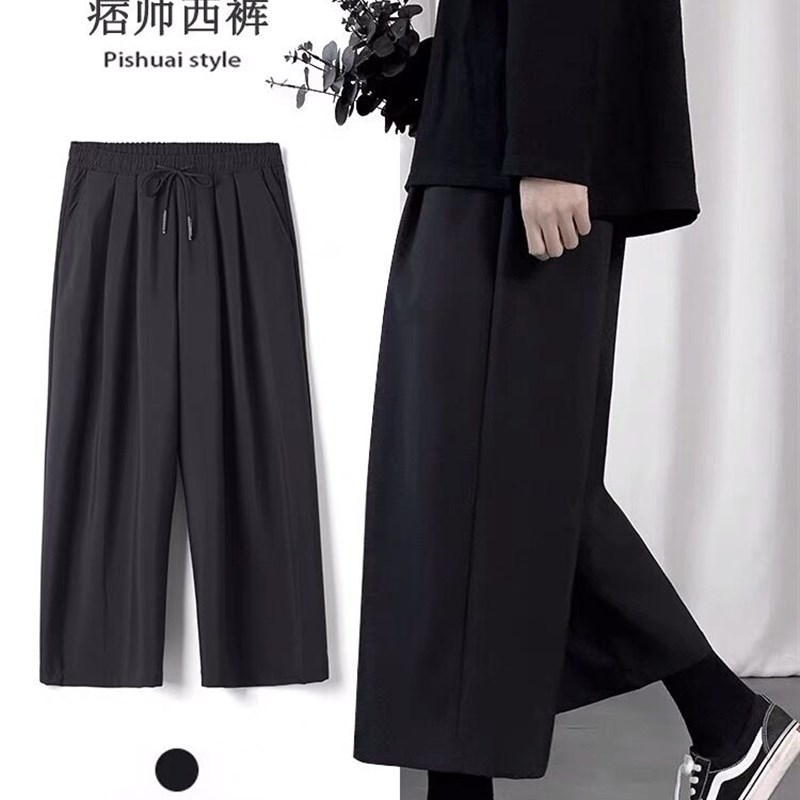 垂感小西裤男直筒宽松夏季坠感潮流港风休闲七分九分裤阔腿西装裤