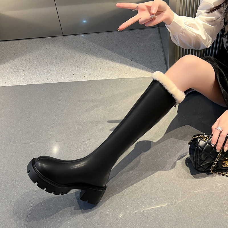 毛毛高筒靴女2023年新款冬季保暖骑士靴厚底不过膝骑士靴加厚棉鞋