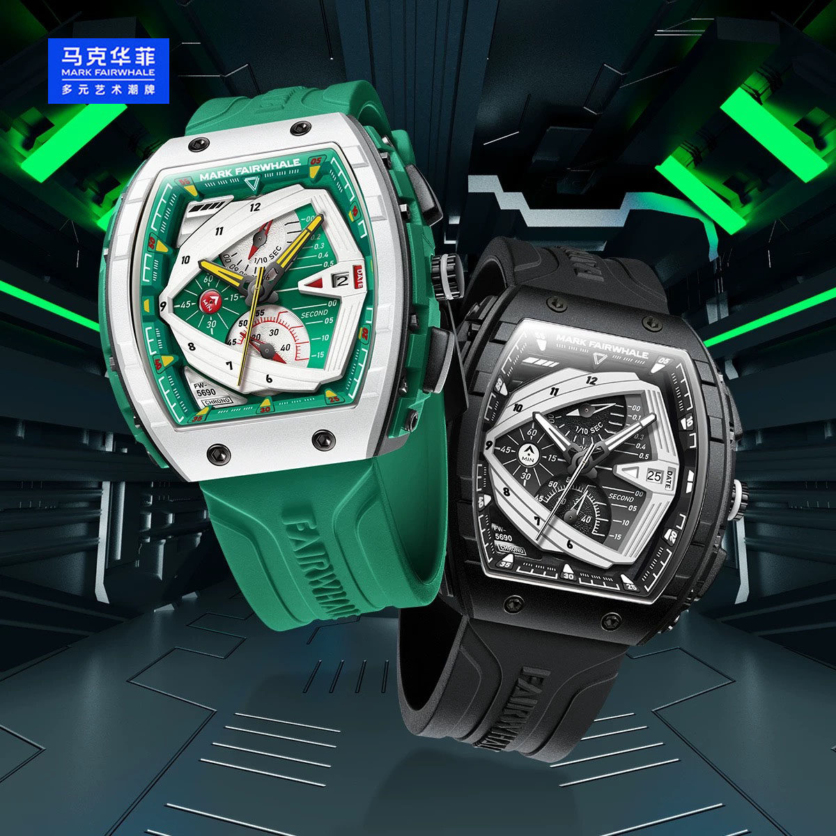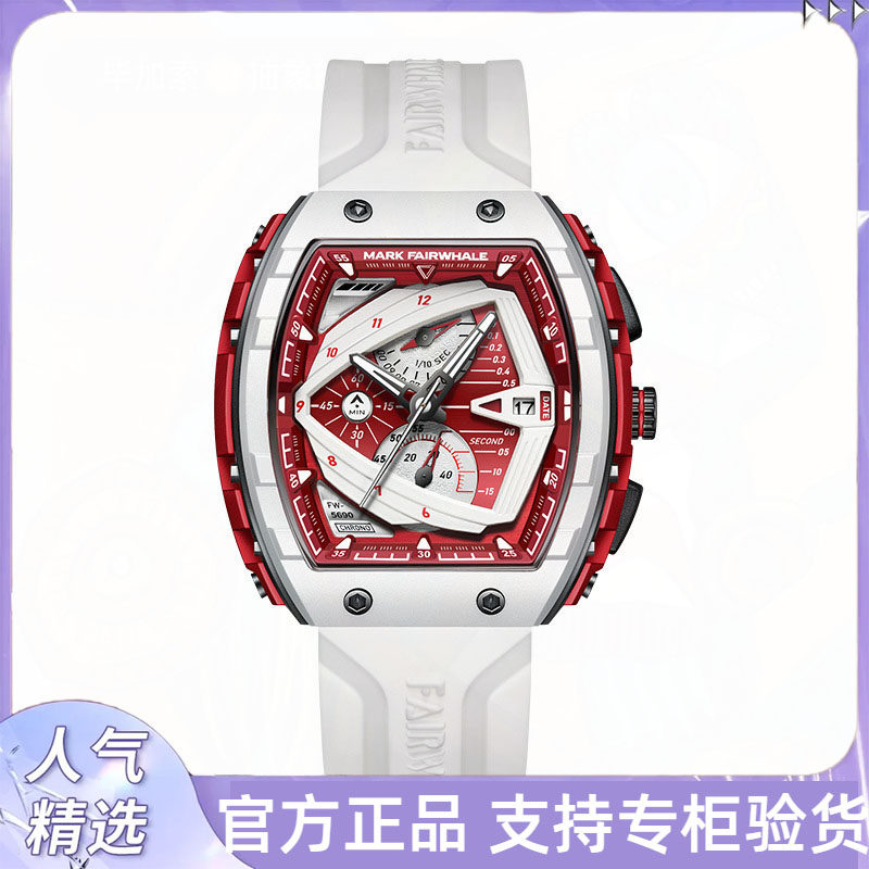 马克华菲新款多功能酒桶型腕表石英表男生机械风手表生日礼物男表