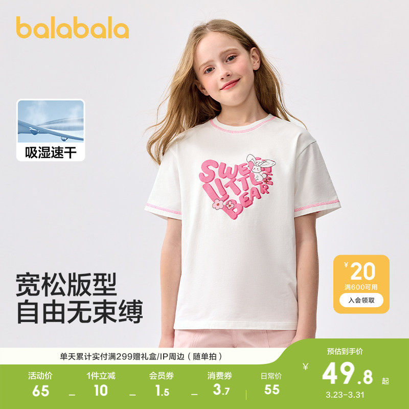 巴拉巴拉童装儿童短袖t恤女童轻薄新款春夏装大童速干甜美学院潮