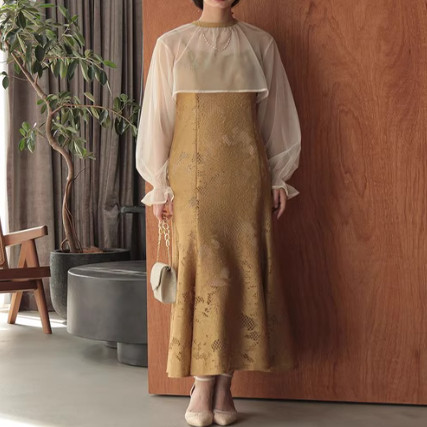D090128日单1.98W圆领衬衫+可调节蕾丝吊带裙气质两件套连衣裙