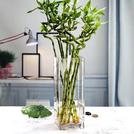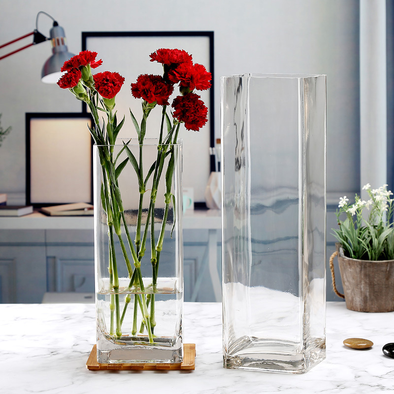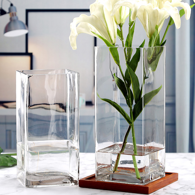 方形落地玻璃花瓶大号特大透明富贵竹百合马醉木客厅插花简约摆件