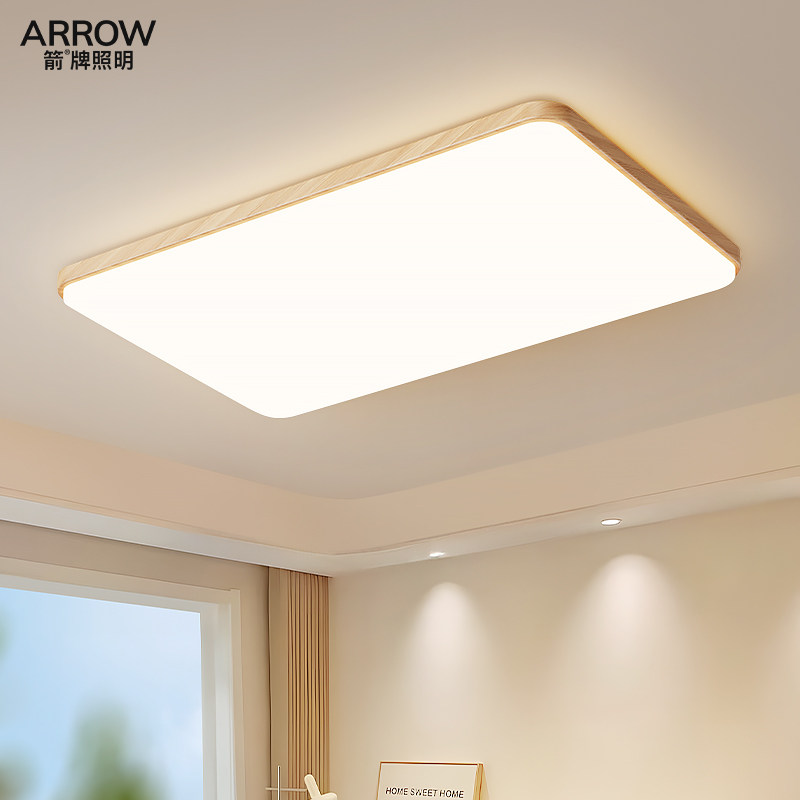 箭牌奶油原木风客厅吸顶灯大气木纹超薄长方大厅主灯卧室灯房间灯