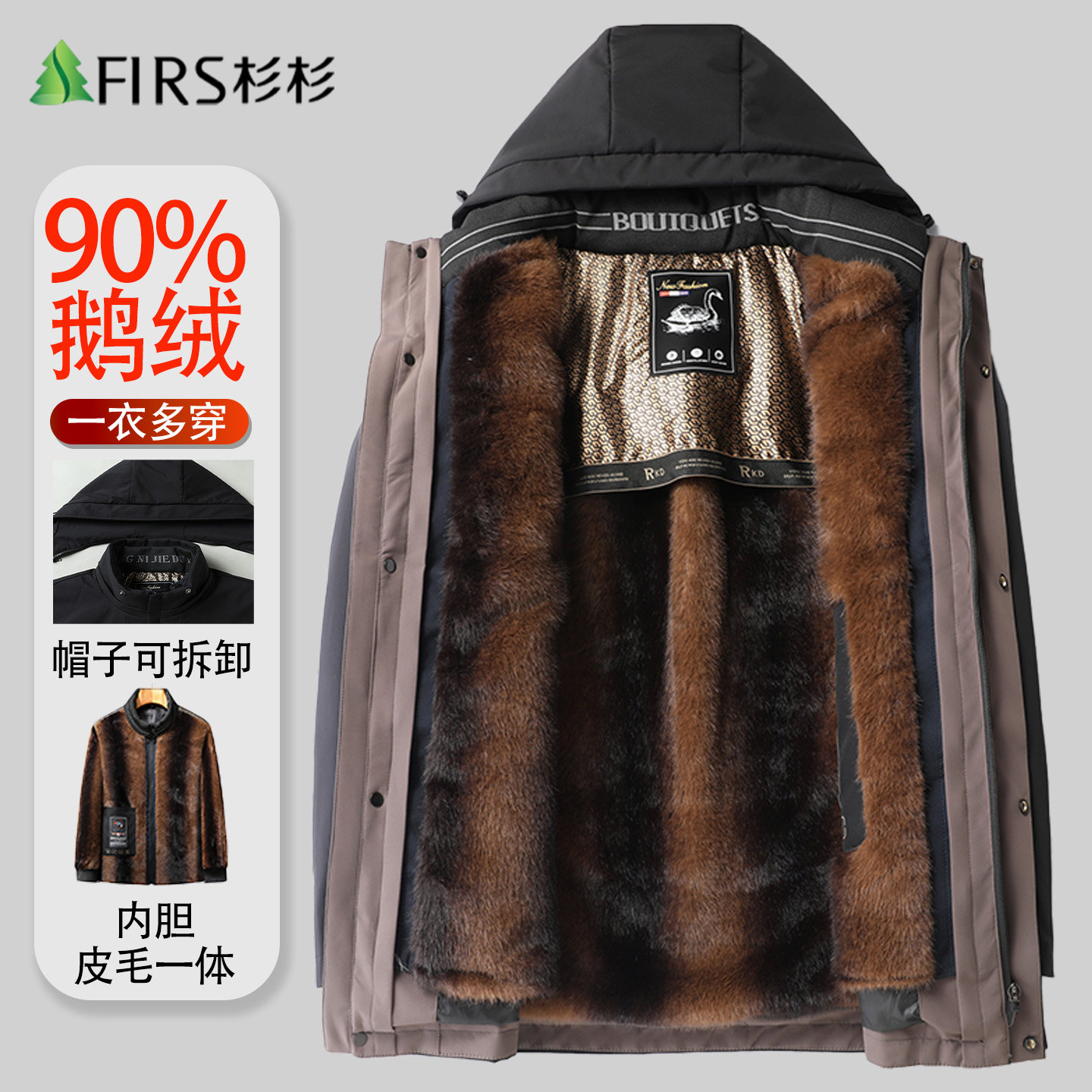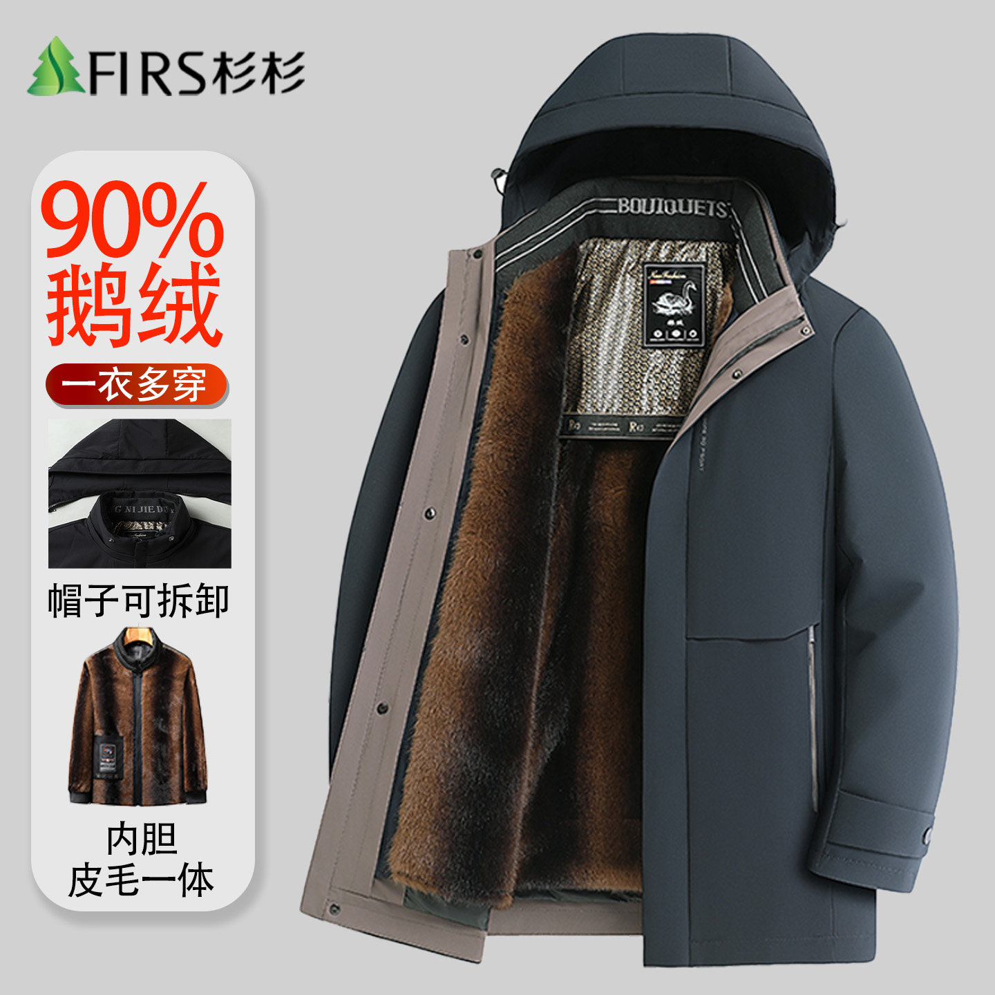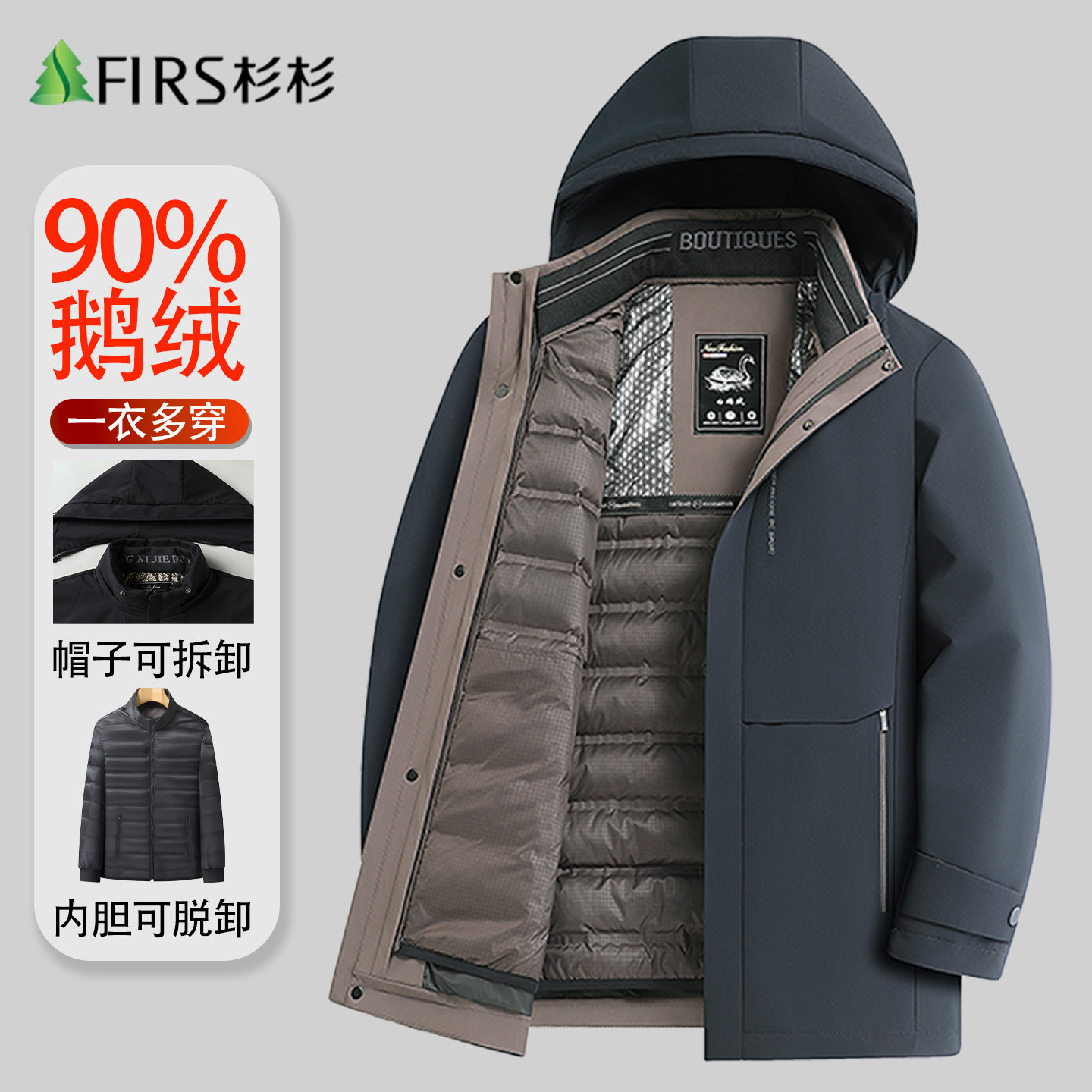 【脱卸内胆】杉杉鹅绒羽绒服男中老年爸爸装冬季加厚保暖休闲外套