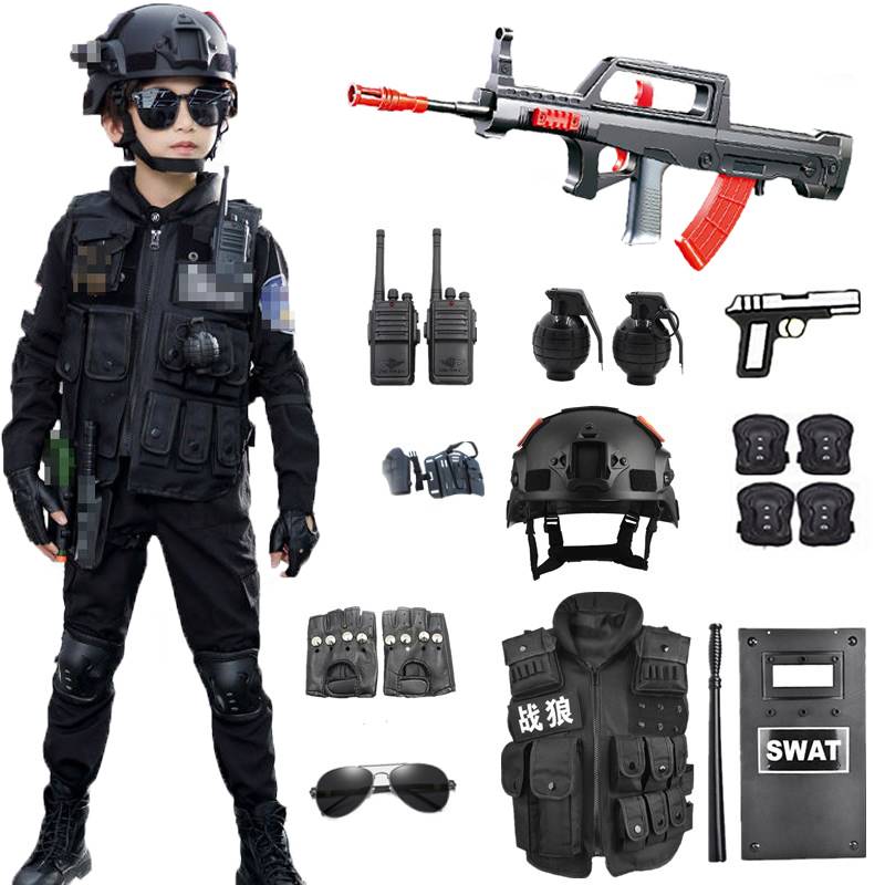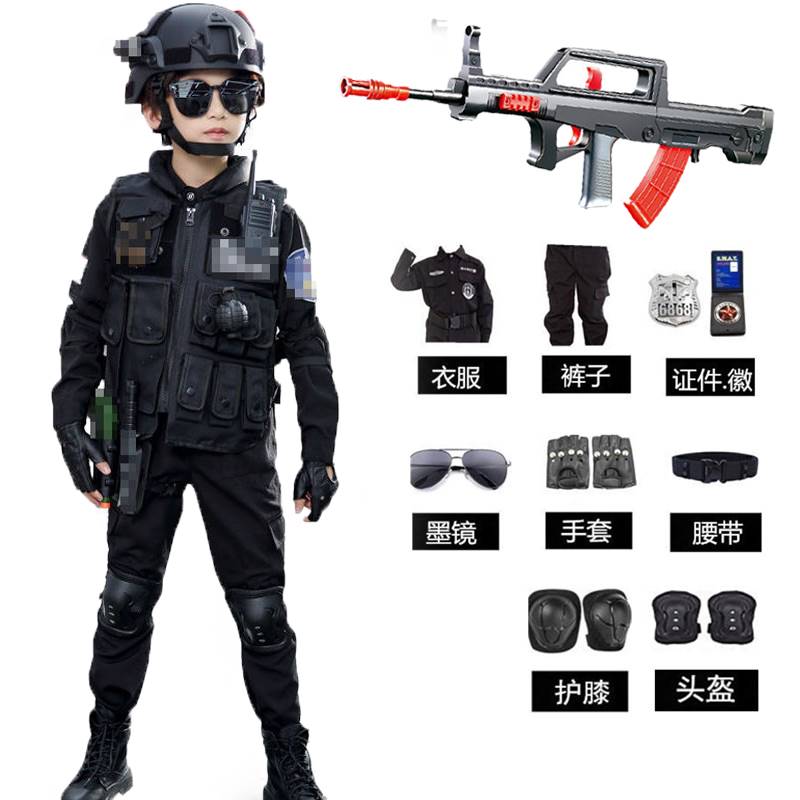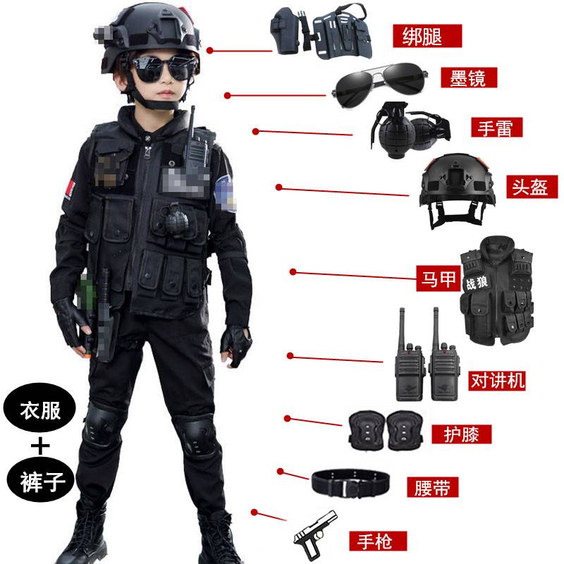 儿童警冬季加绒加厚棉服军装套装男女童特警衣服警察警长服装套装