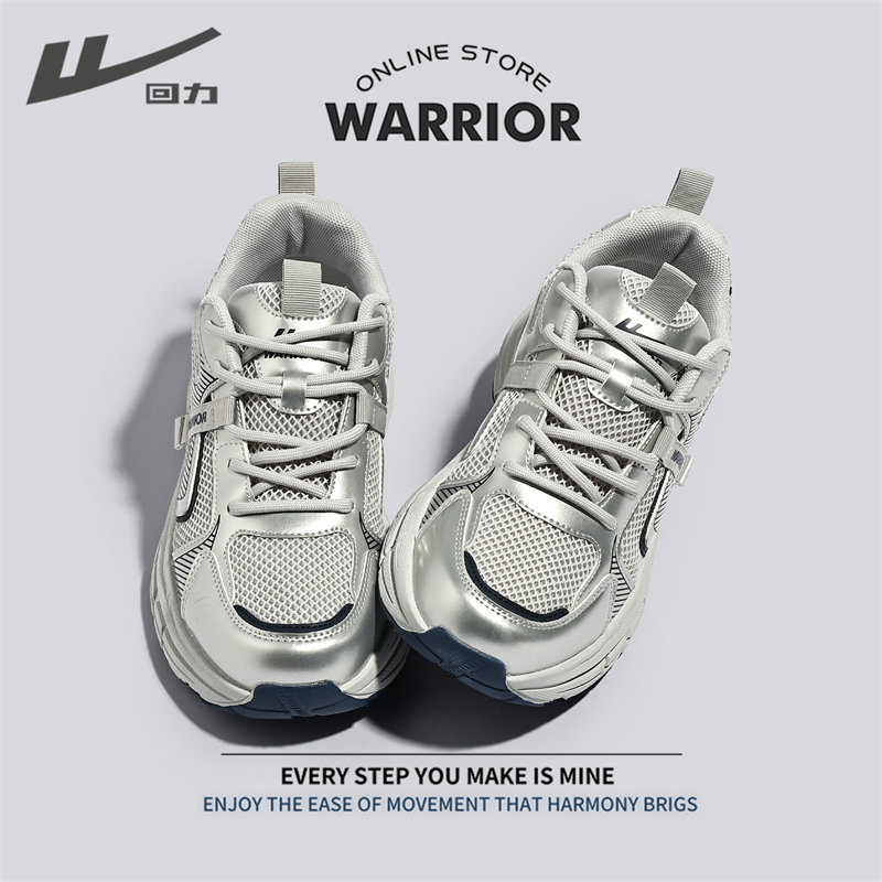 回力运动鞋女2025秋季新款银色透气网面鞋女鞋厚底休闲跑步老爹鞋