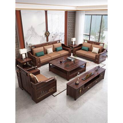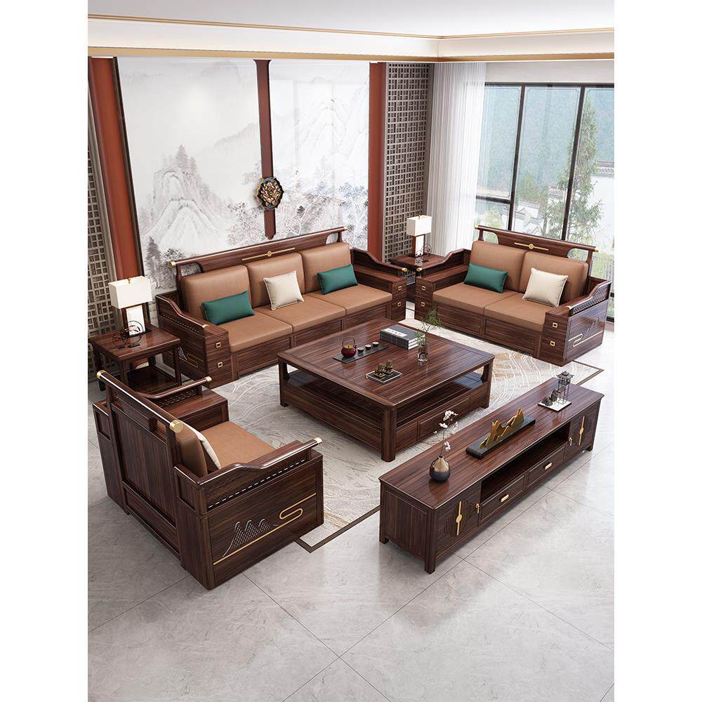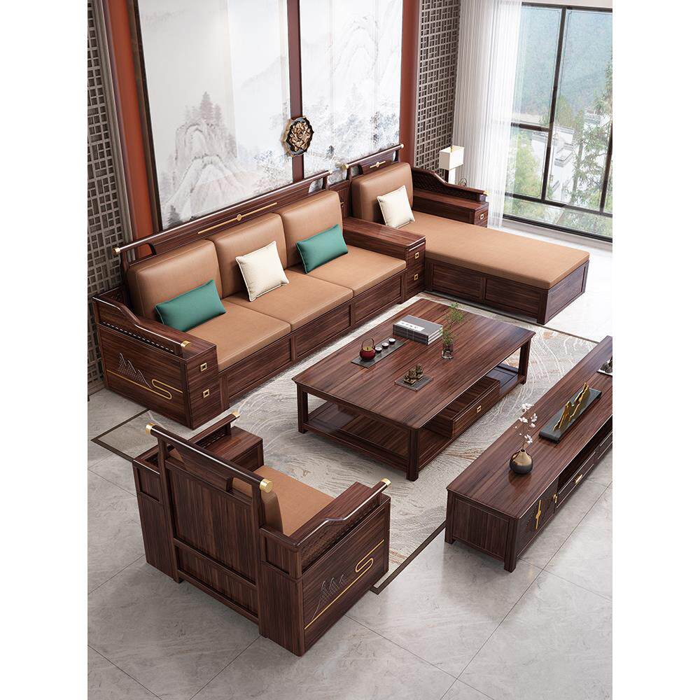 新中式乌木实木沙发客厅冬夏两用别墅轻奢家具大小公寓木沙发