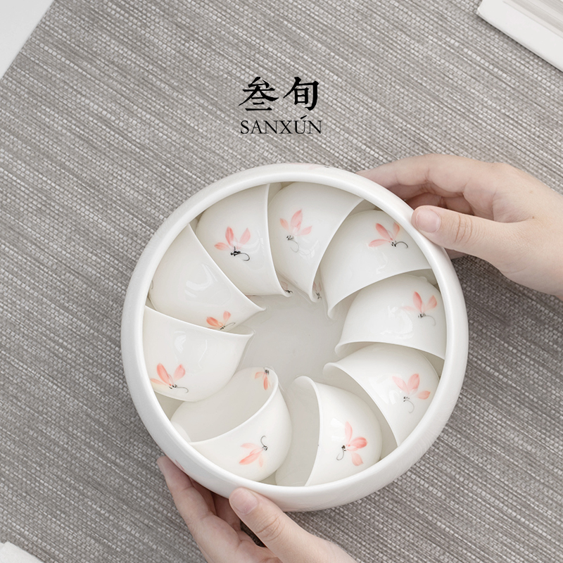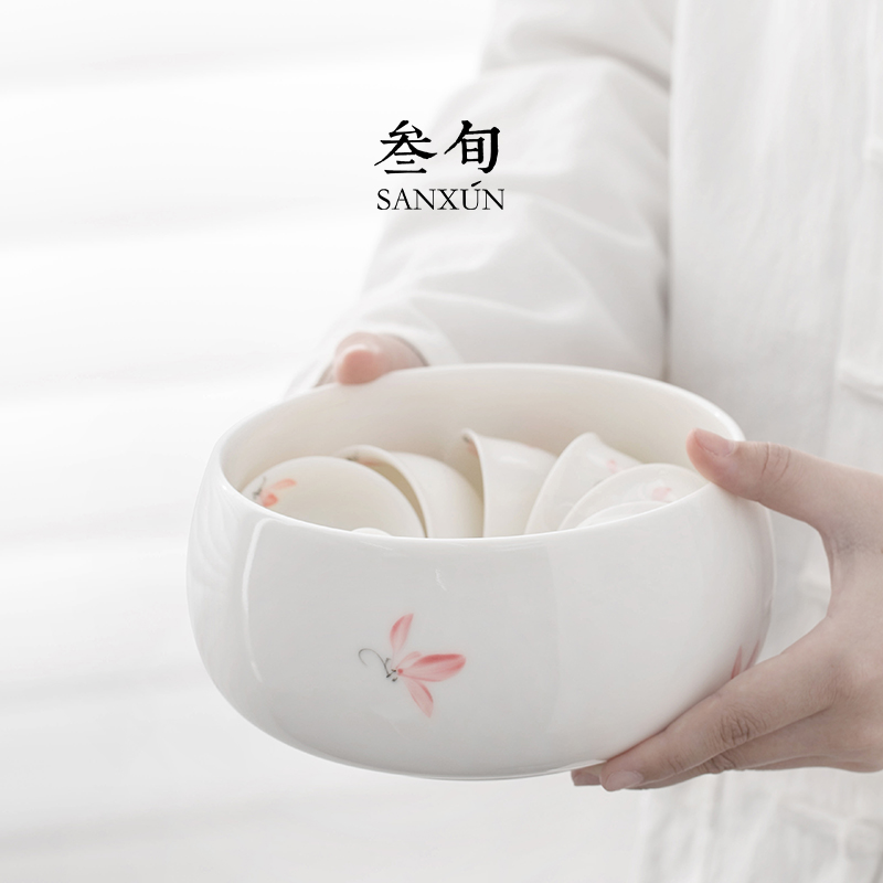 叁旬 手绘粉兰茶洗大号家用陶瓷茶缸高端白瓷茶具配件水盂茶渣缸