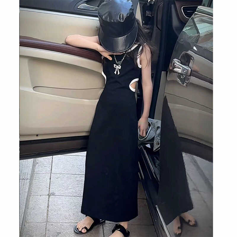 女童夏季裙子2025新款大童女孩洋气背心露腰裙长款儿童长裙连衣裙
