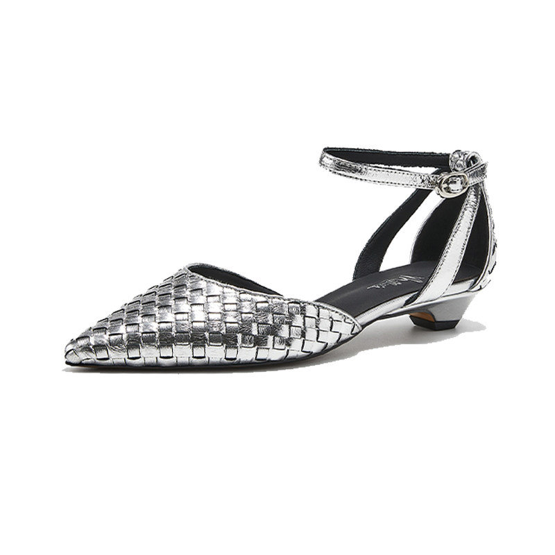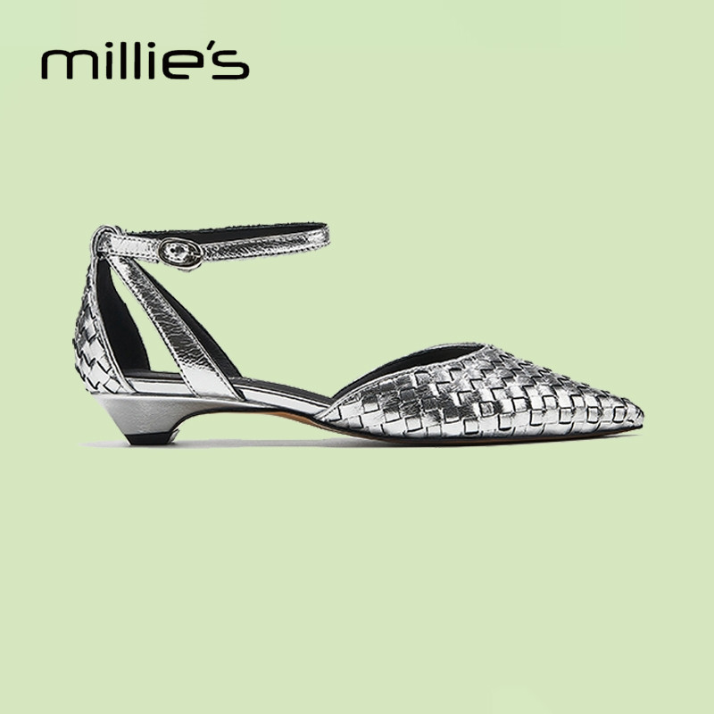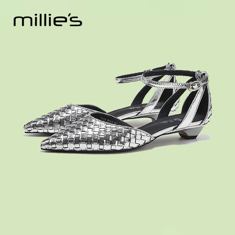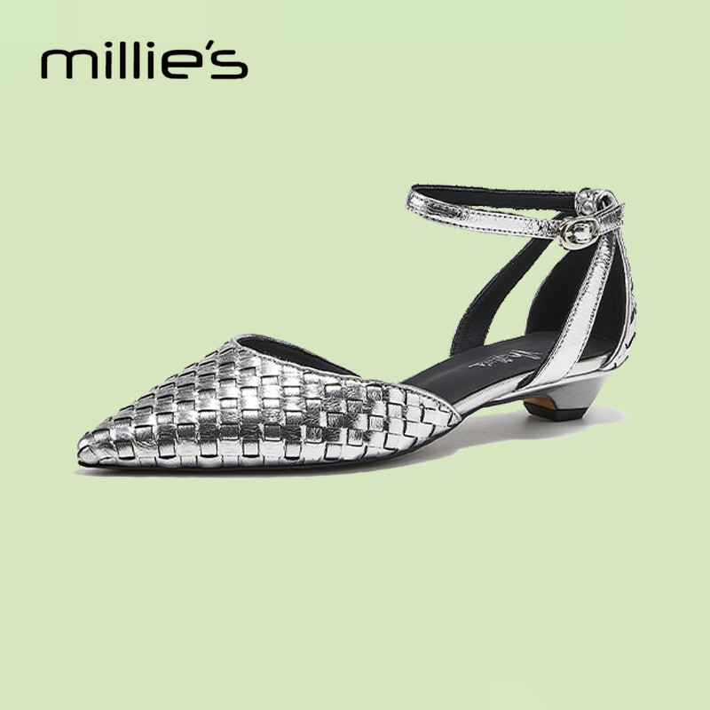 妙丽官方旗舰店尖头粗跟女鞋夏季一字式扣带时尚女鞋简约百搭凉鞋