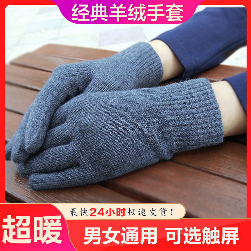冬季保暖手套女大码山羊绒手套男可触屏分指薄款学生骑车羊毛手套