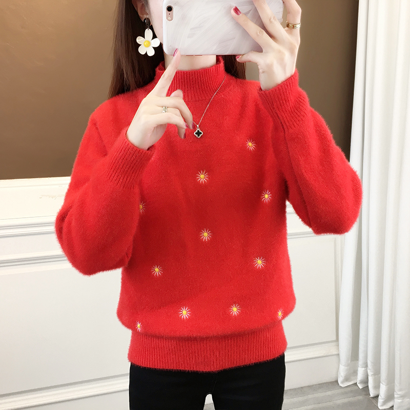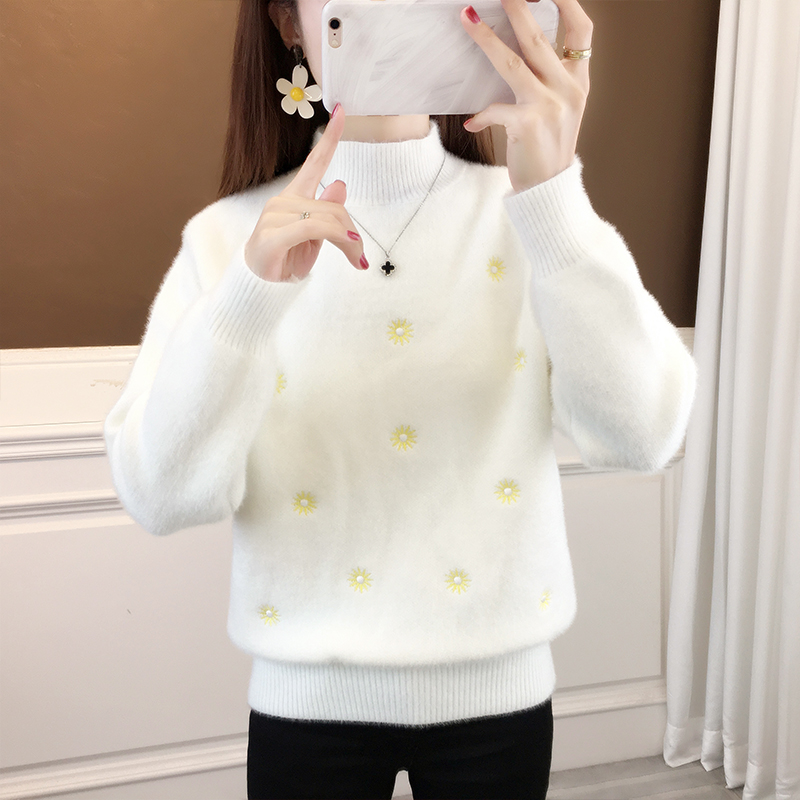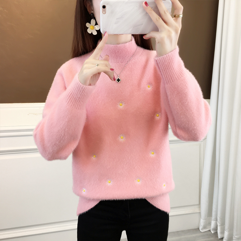 2025年新款秋冬季黄金貂毛衣女保宽松保暖套头半高领洋气外穿上衣