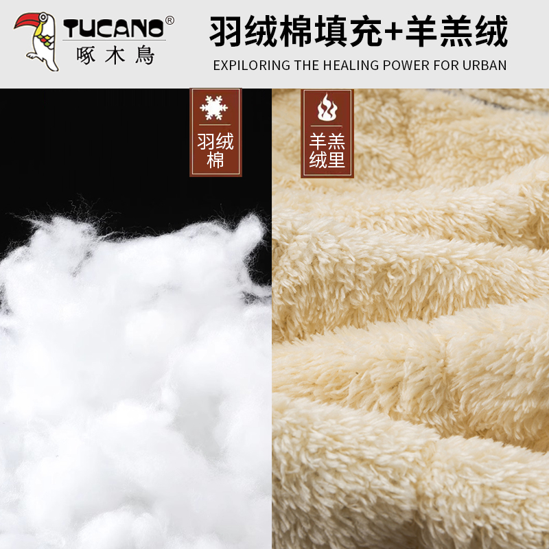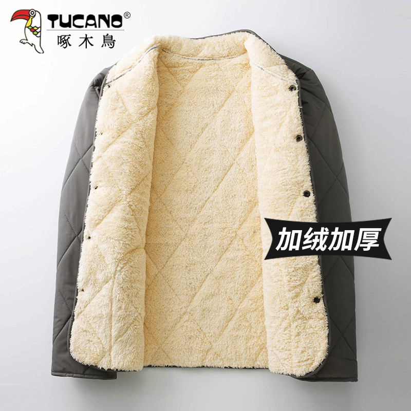 啄木鸟正品冬季爸爸加绒加厚一体羊羔绒棉袄男士爸爸居家保暖外套