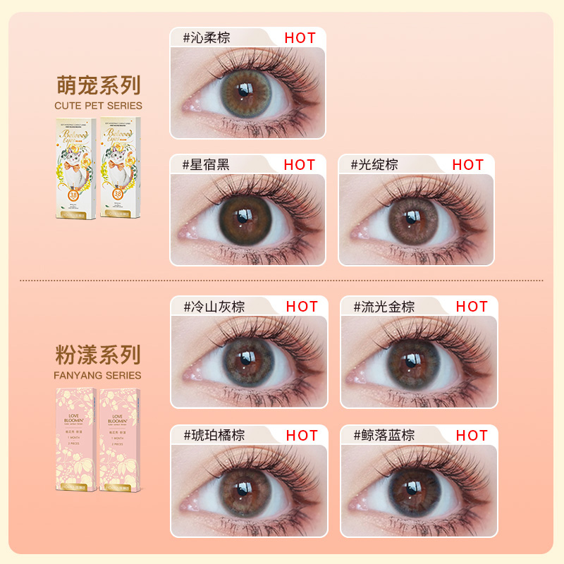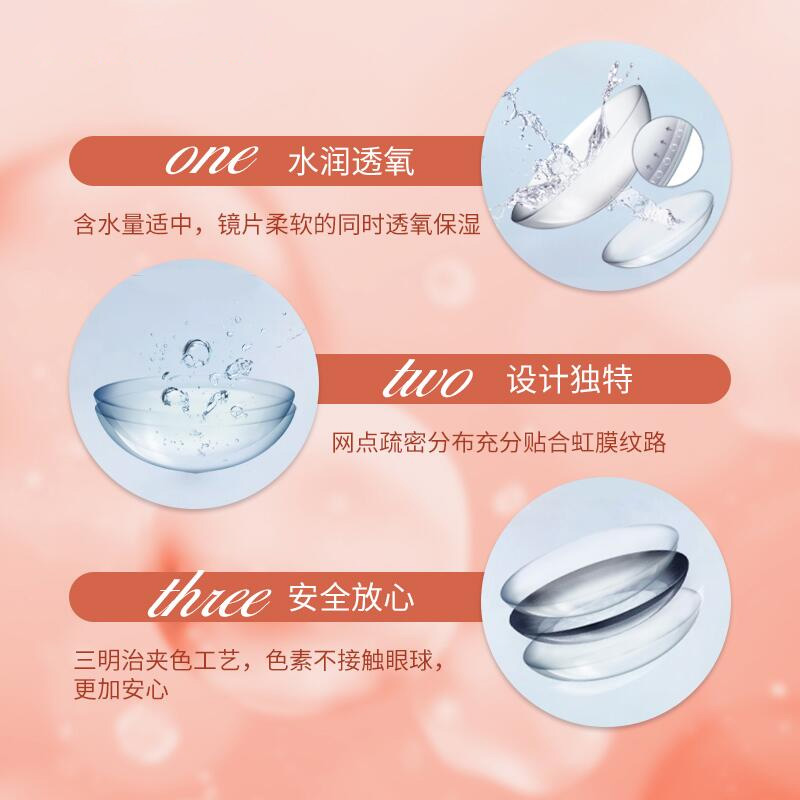 海俪恩美瞳月抛2片萌宠粉漾大小直径彩色隐形近视眼镜自然正品