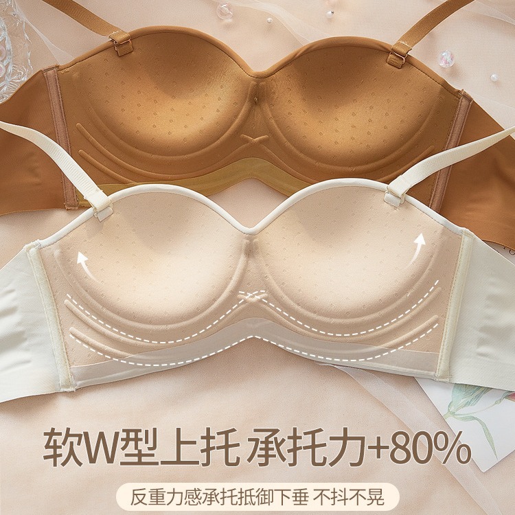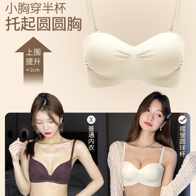 新少女小胸性感聚拢内衣半杯无钢圈婚庆无痕一片式防走光抹胸文胸