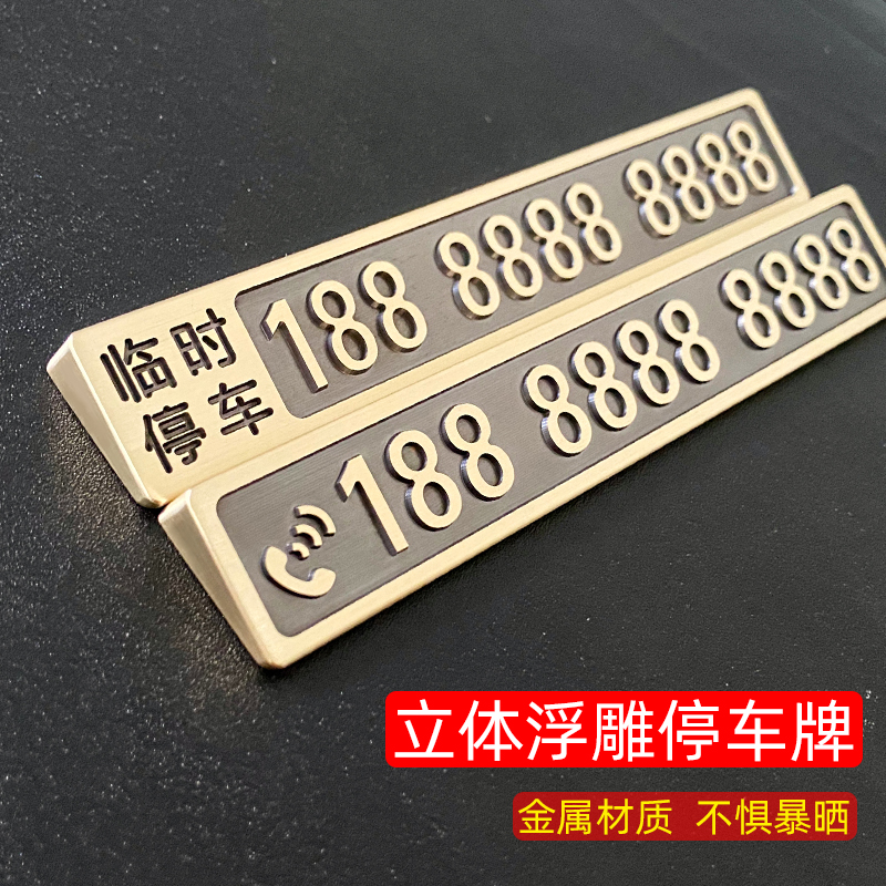 黄铜临时停车牌汽车挪车牌创意车内电话号码牌个性车载摆件定制