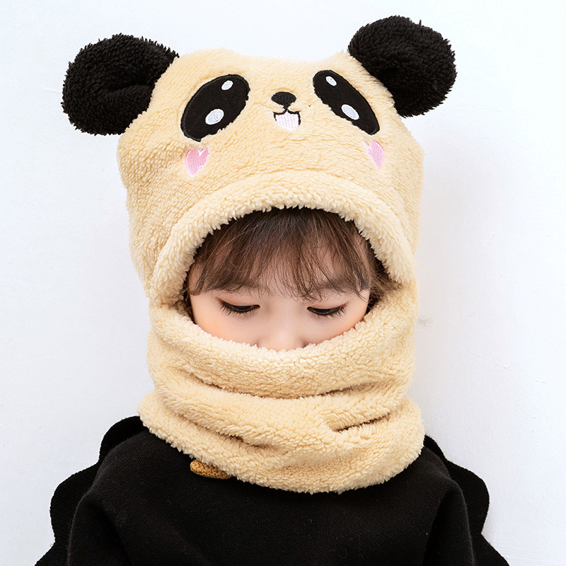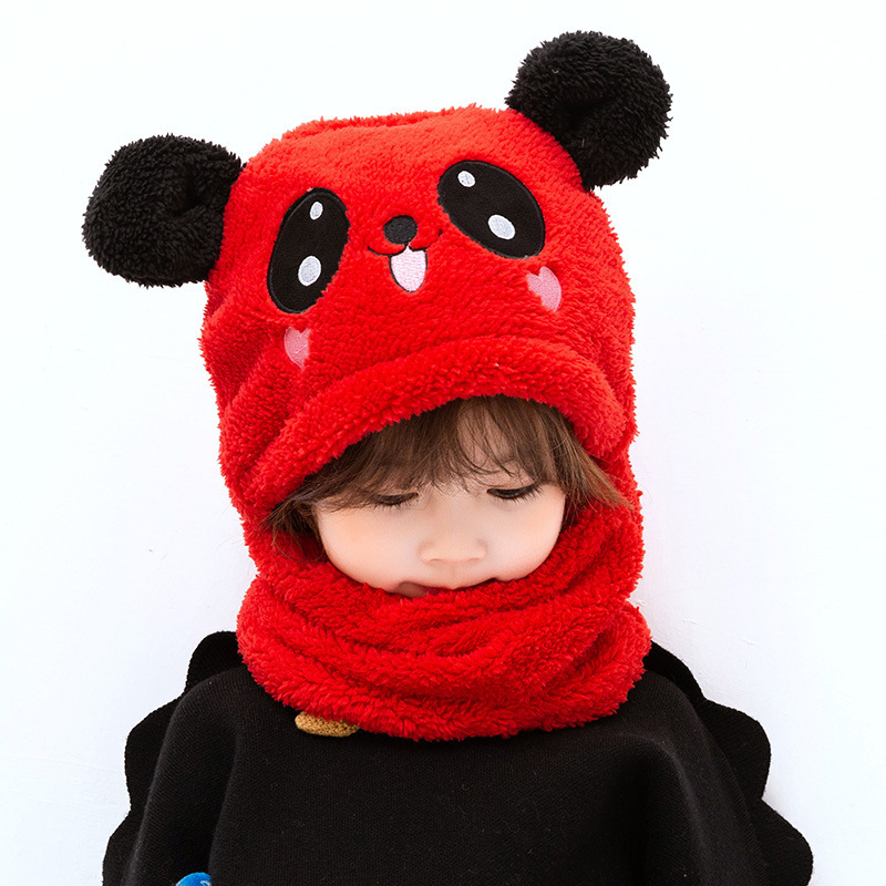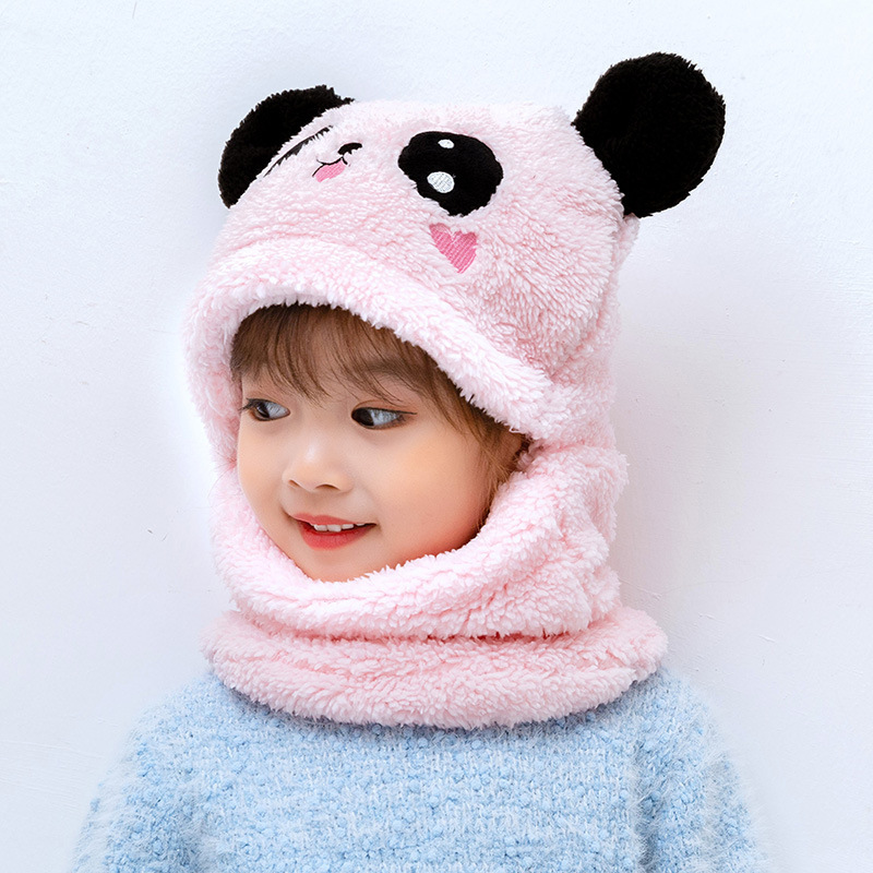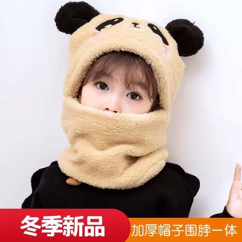 熊猫儿童帽子围脖一体秋冬男女童护耳可爱亲子套头帽宝宝加绒棉帽