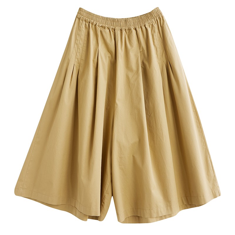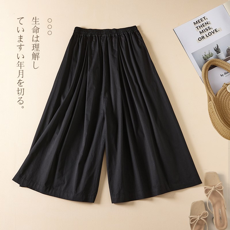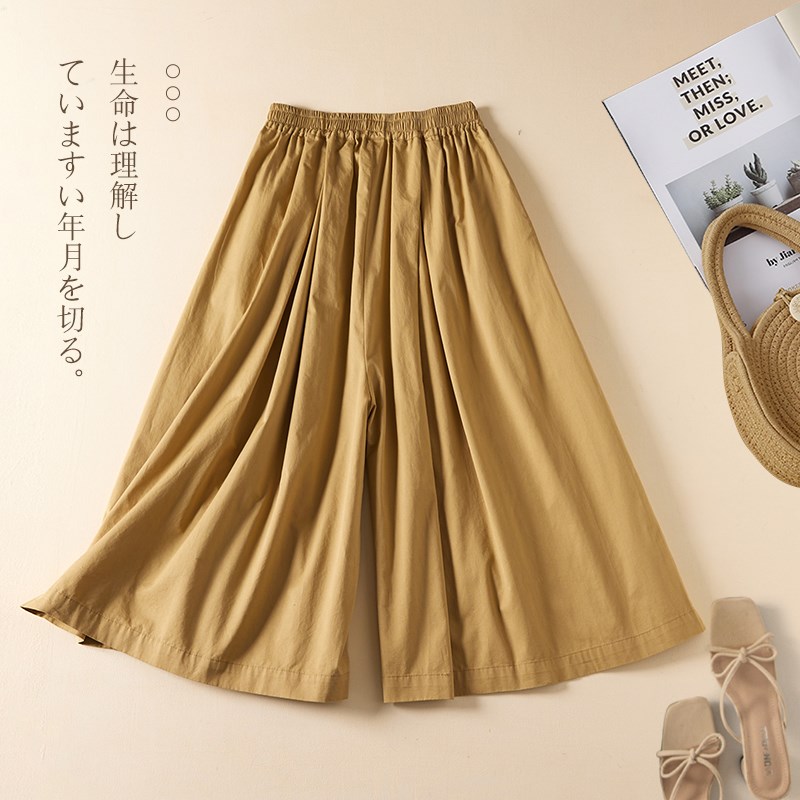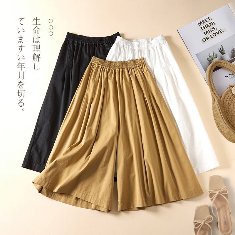 极速文艺休闲全棉七分阔腿裤裙女夏季松I紧腰显瘦宽松百搭纯色大