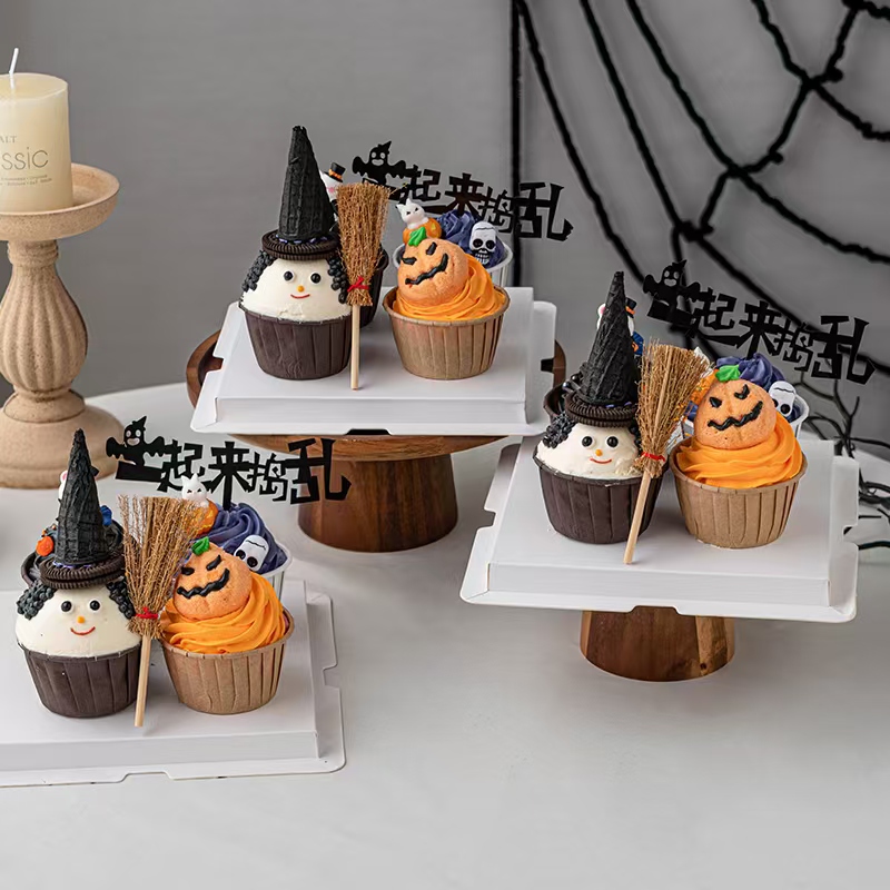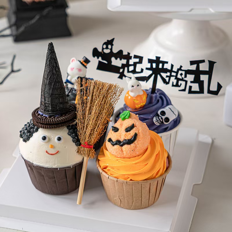 2025万圣节亚克力纸杯蛋糕装饰插件扫帚南瓜搞怪派对烘焙装扮摆件