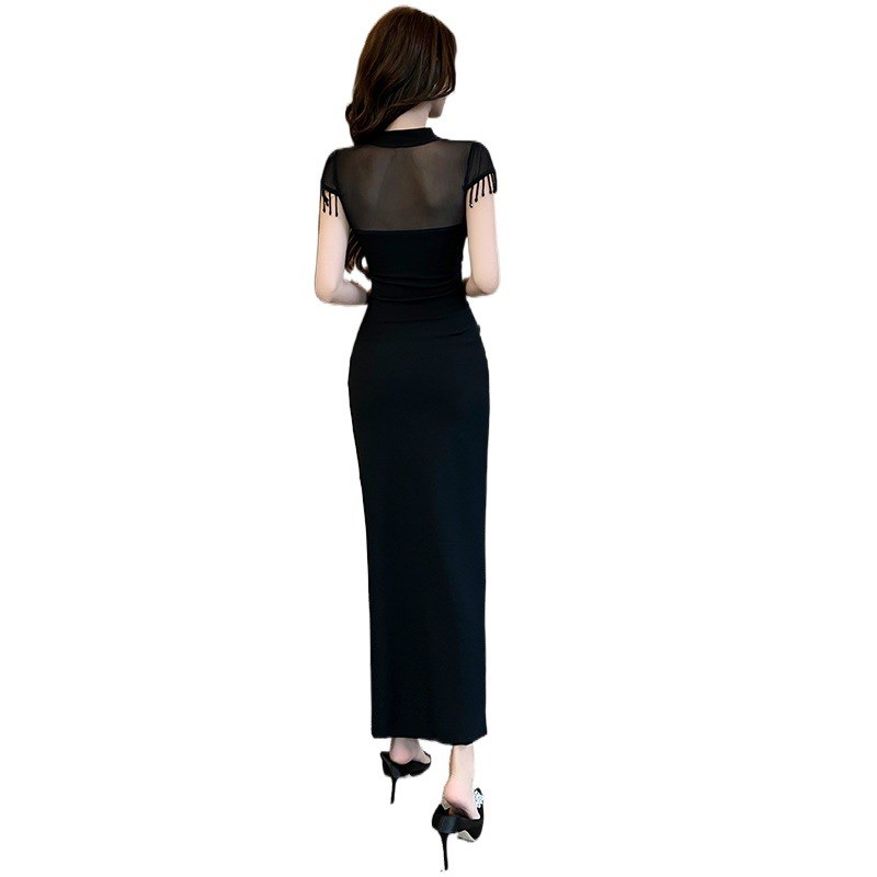 新中式改良旗袍长款晚礼服高级感性感连衣裙足浴按摩技师工作服女