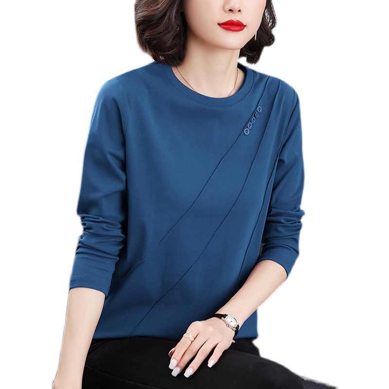 遮肚休闲大码妈妈装长袖打底衫2025秋季新款纯色宽松减龄内搭女装