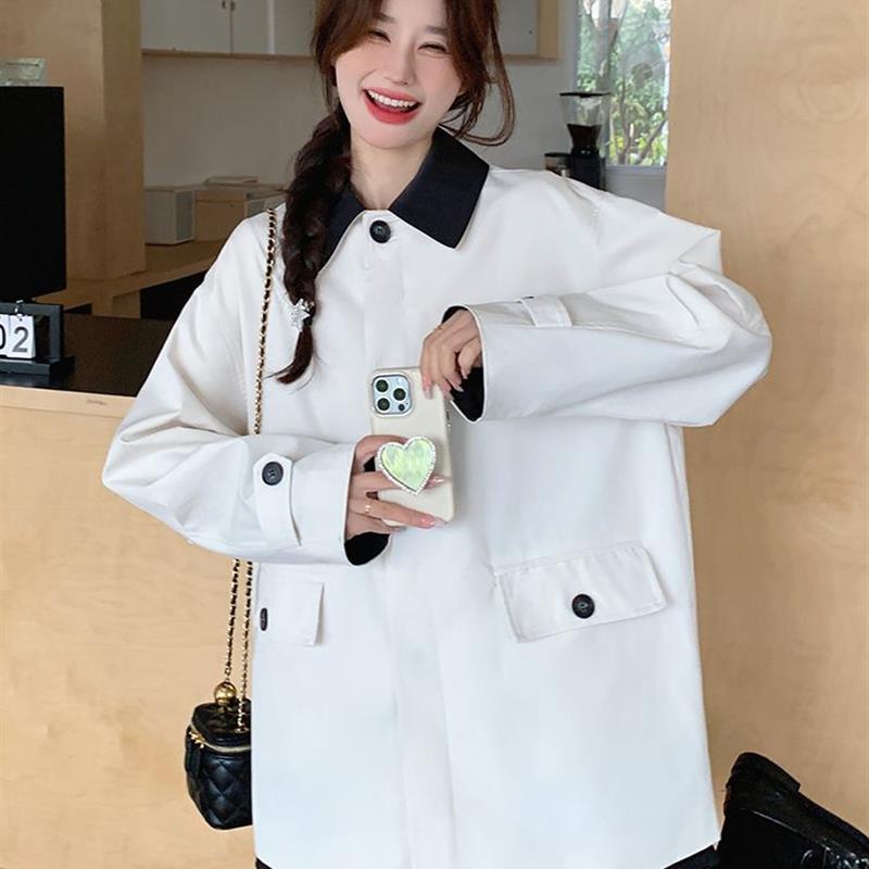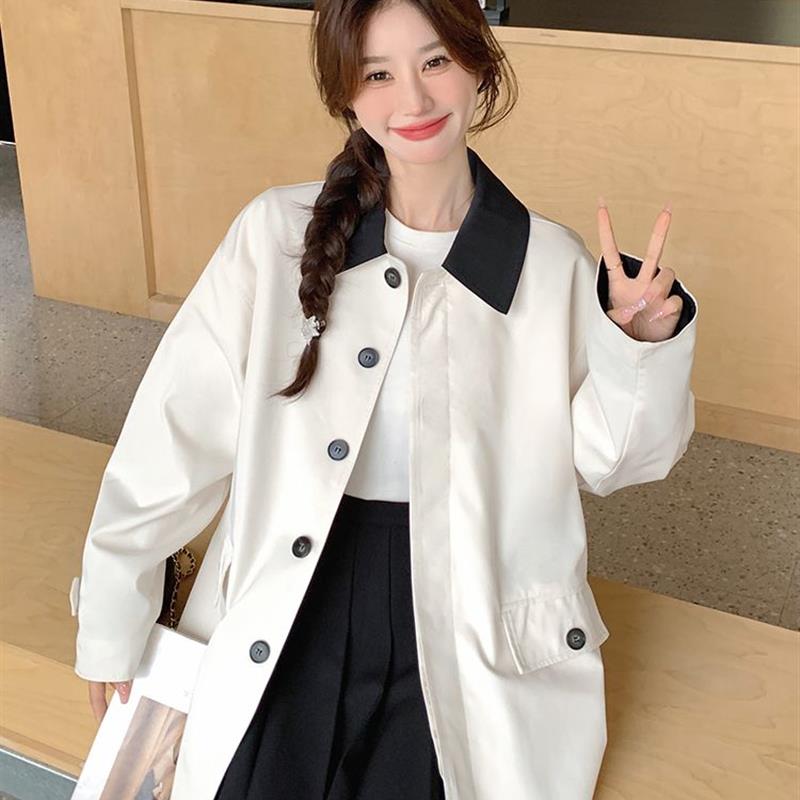 白色中长款风衣外套女2025新款春秋款小个子高级感超好看韩系日系