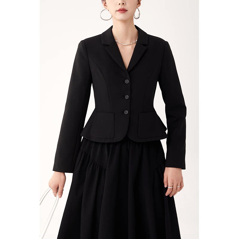 CR西装外套女装2026春秋新款上衣黑色收腰气质法式初春小个子衣服