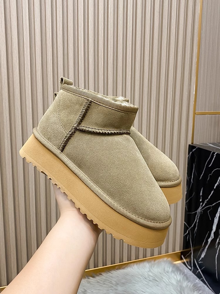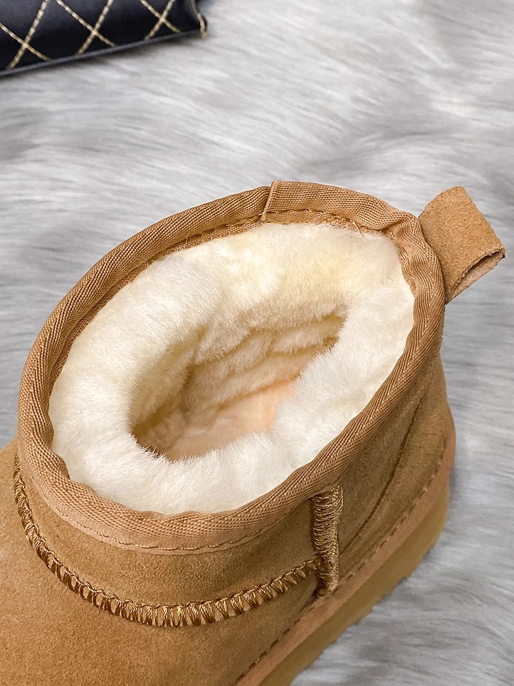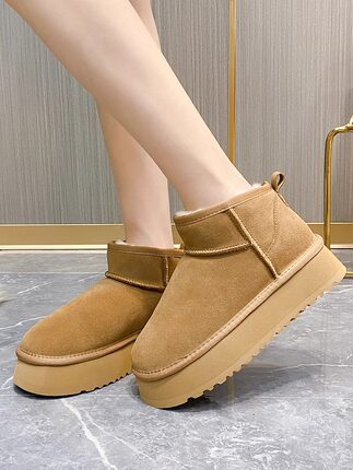 厚底雪地靴女皮毛一体2023新款周冬雨同款增高迷你短筒加厚棉鞋冬