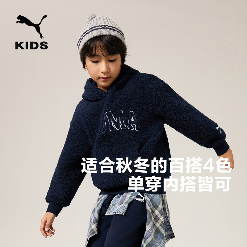 PUMA彪马童装男女童秋冬季小学生连帽卫衣加绒加厚运动帽衫外套