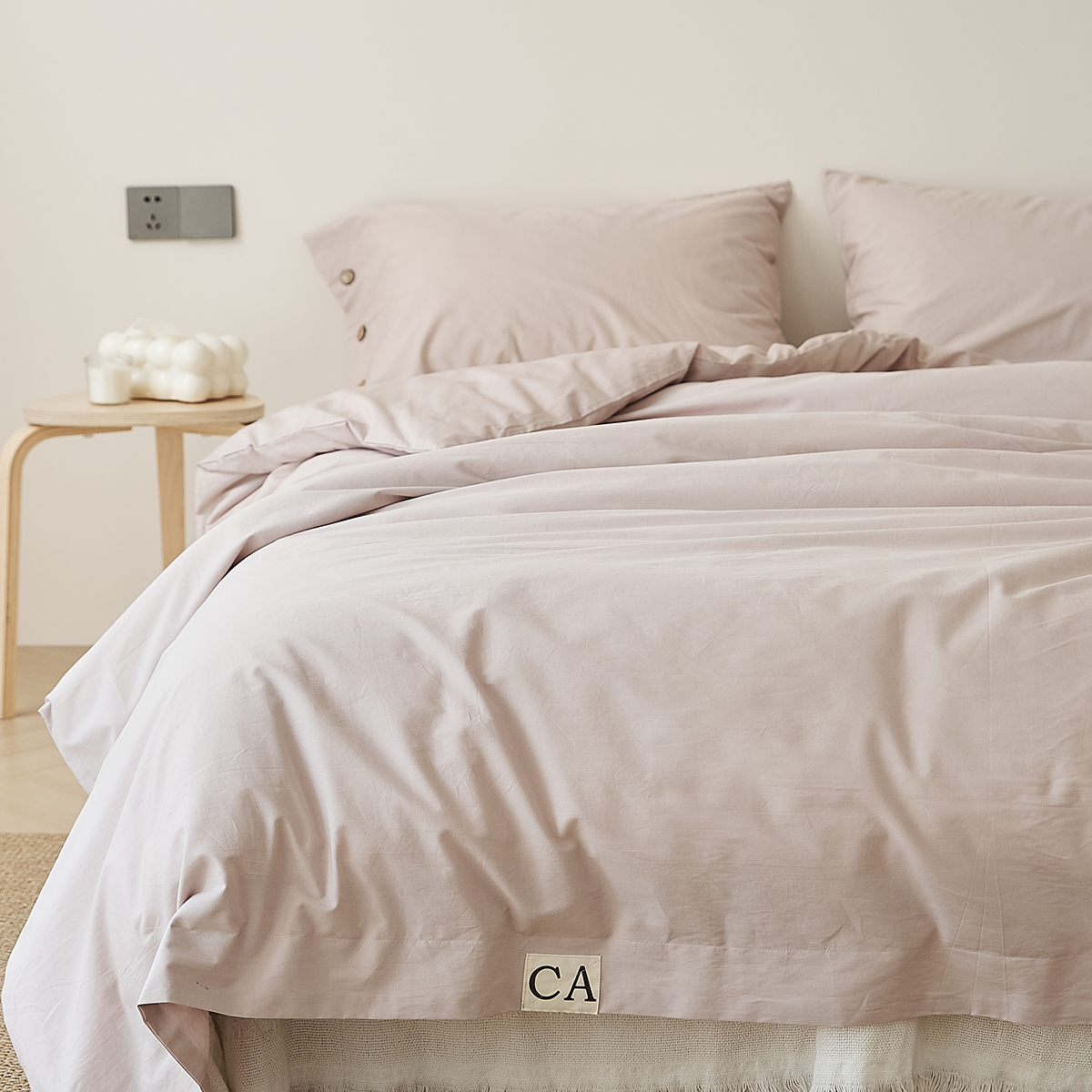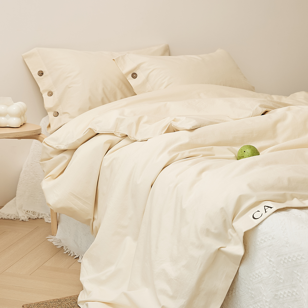 在耳边简约素色40s水洗棉全棉单件被套春夏奶油色纯棉单双人被罩