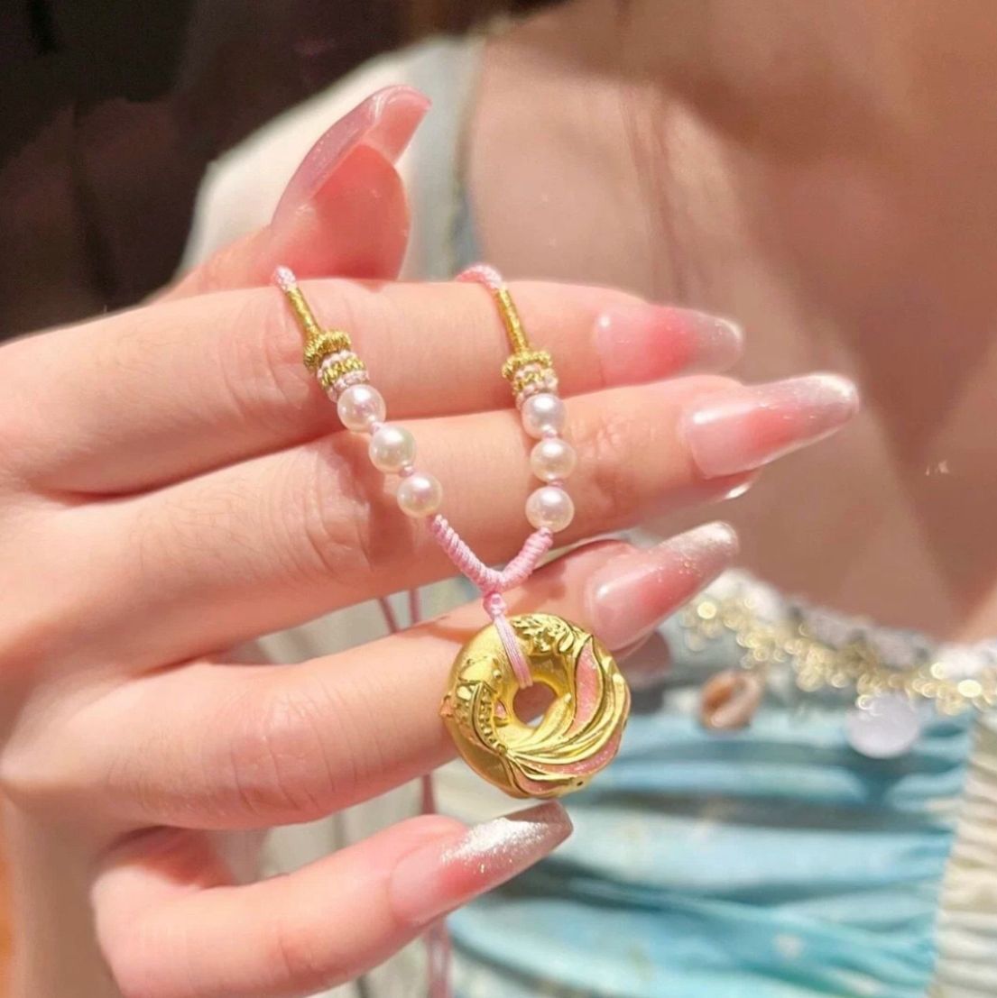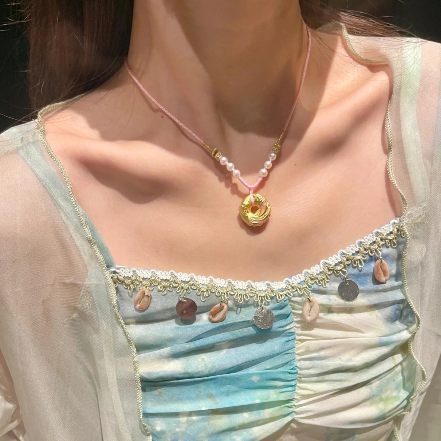 小红书同款沙金蜜粉锦鲤平安扣吊坠项链甜美系精致莲花挂坠锁骨