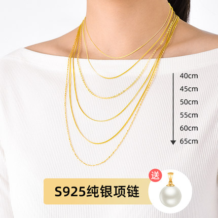金颐堂925银纯银项链女毛衣链长款百搭裸链镀黄金色18k金色链子配