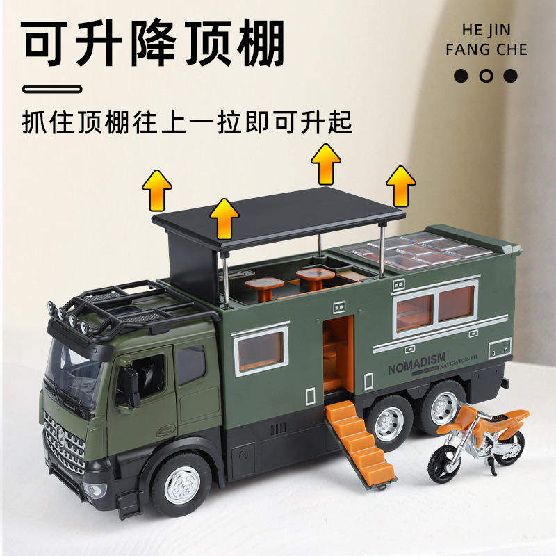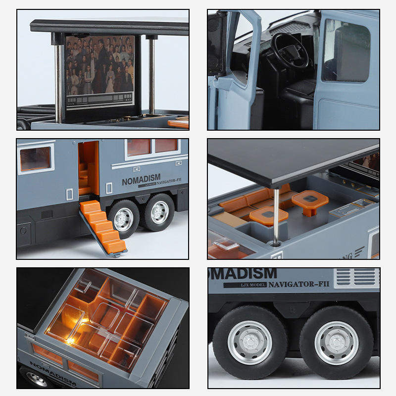(哇噢定制)1:18诺马迪多功能房车合金车声光音效男孩过家家玩具