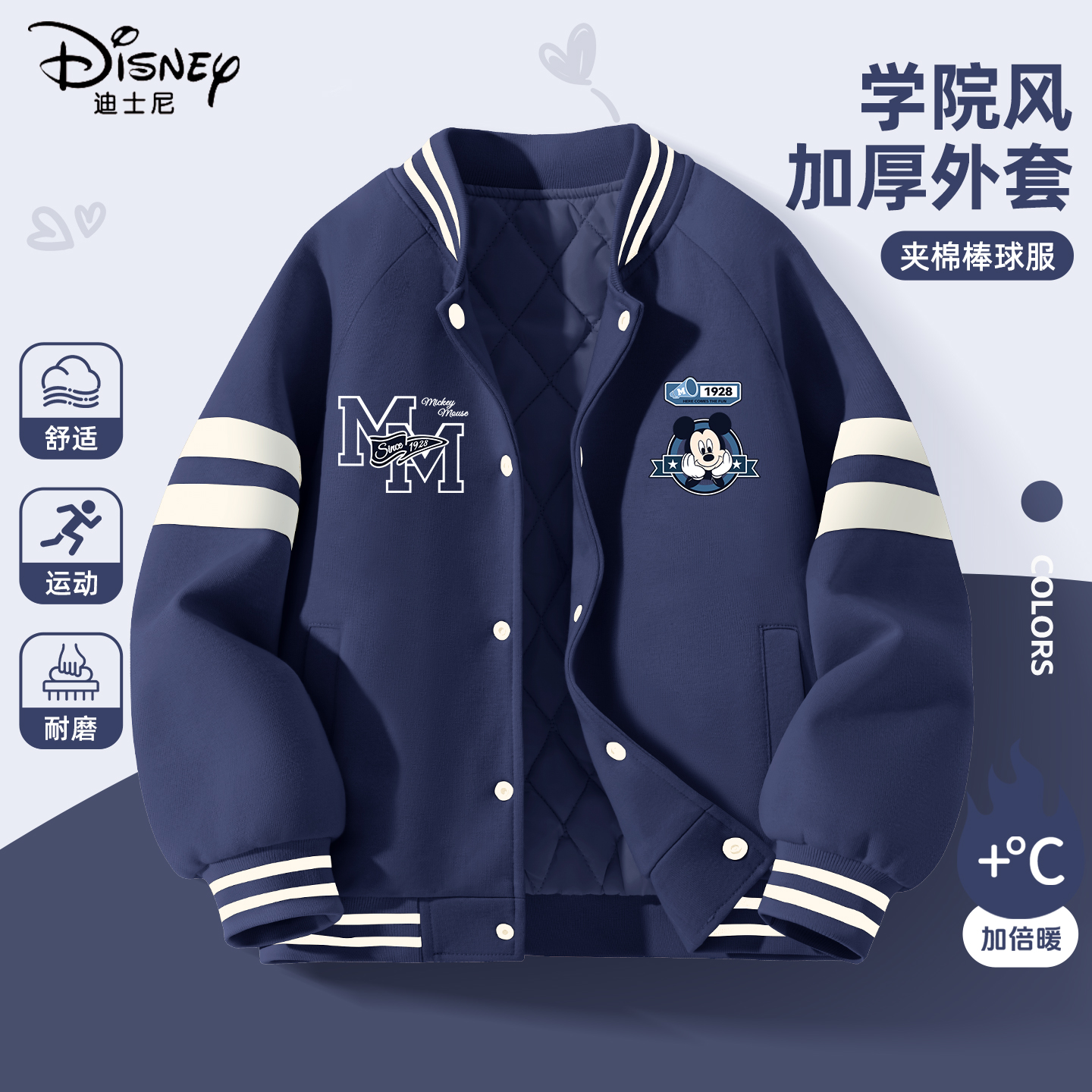 迪士尼男童夹棉外套防风棉服儿童冬季2025新款一体绒男孩衣服冬装