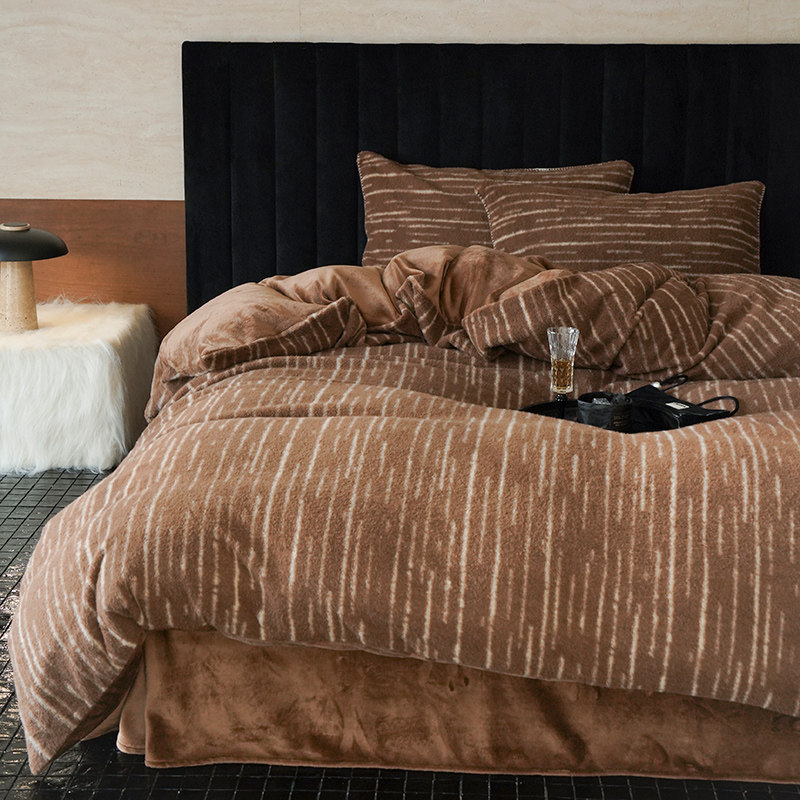 简约羊毛绒四件套冬季牛奶绒珊瑚绒加绒被套床单轻奢高级感主卧室